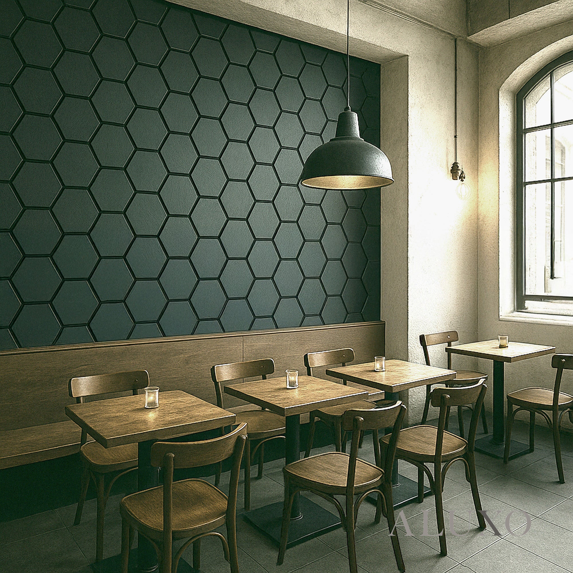 The Charcoal Black Hexagon Acoustic Wall Panel makes a bold architectural statement. Its deep tone and clean geometric edges deliver a refined, modern aesthetic—ideal for minimalist and monochrome spaces. Aluxo-Track Aluxo-TrackCopy