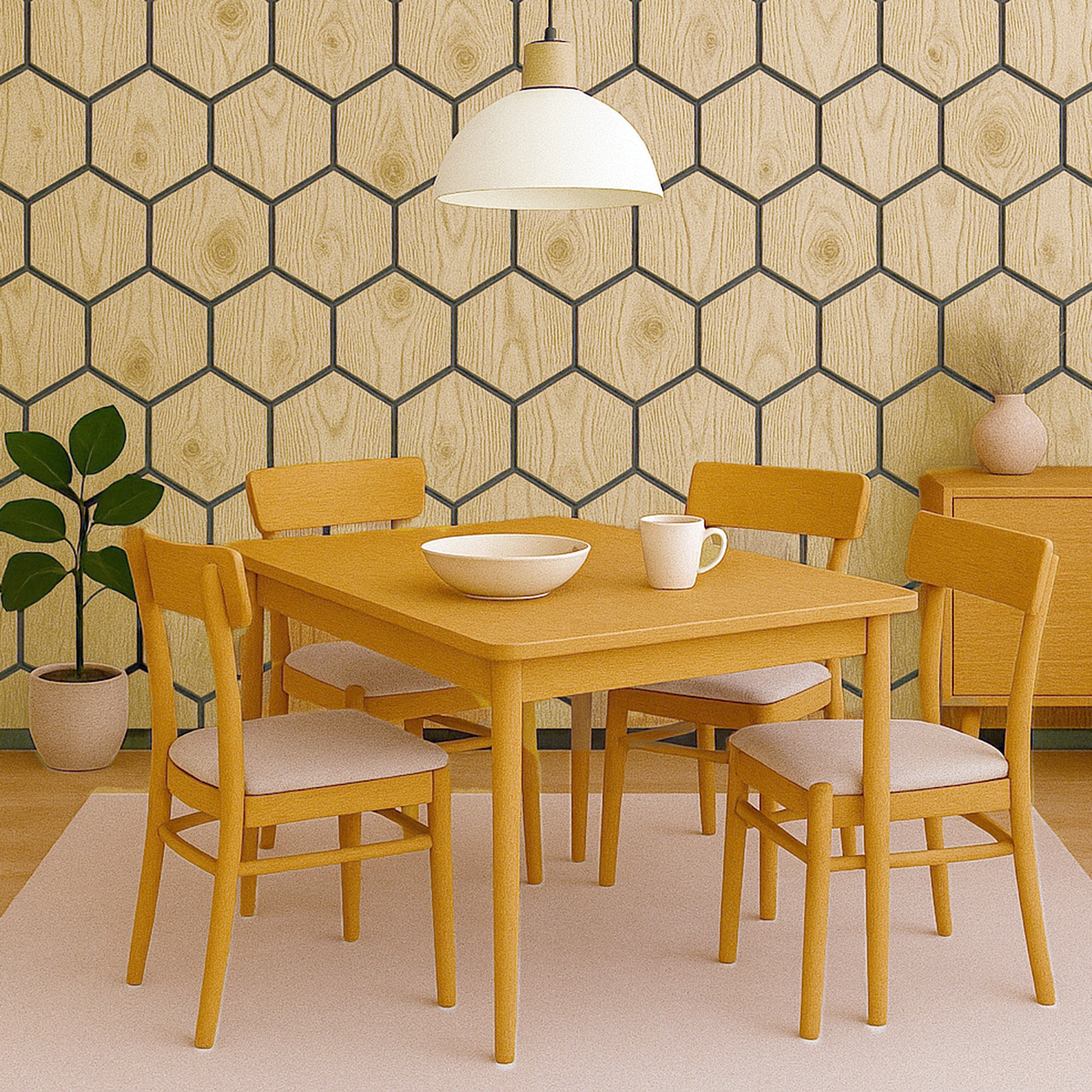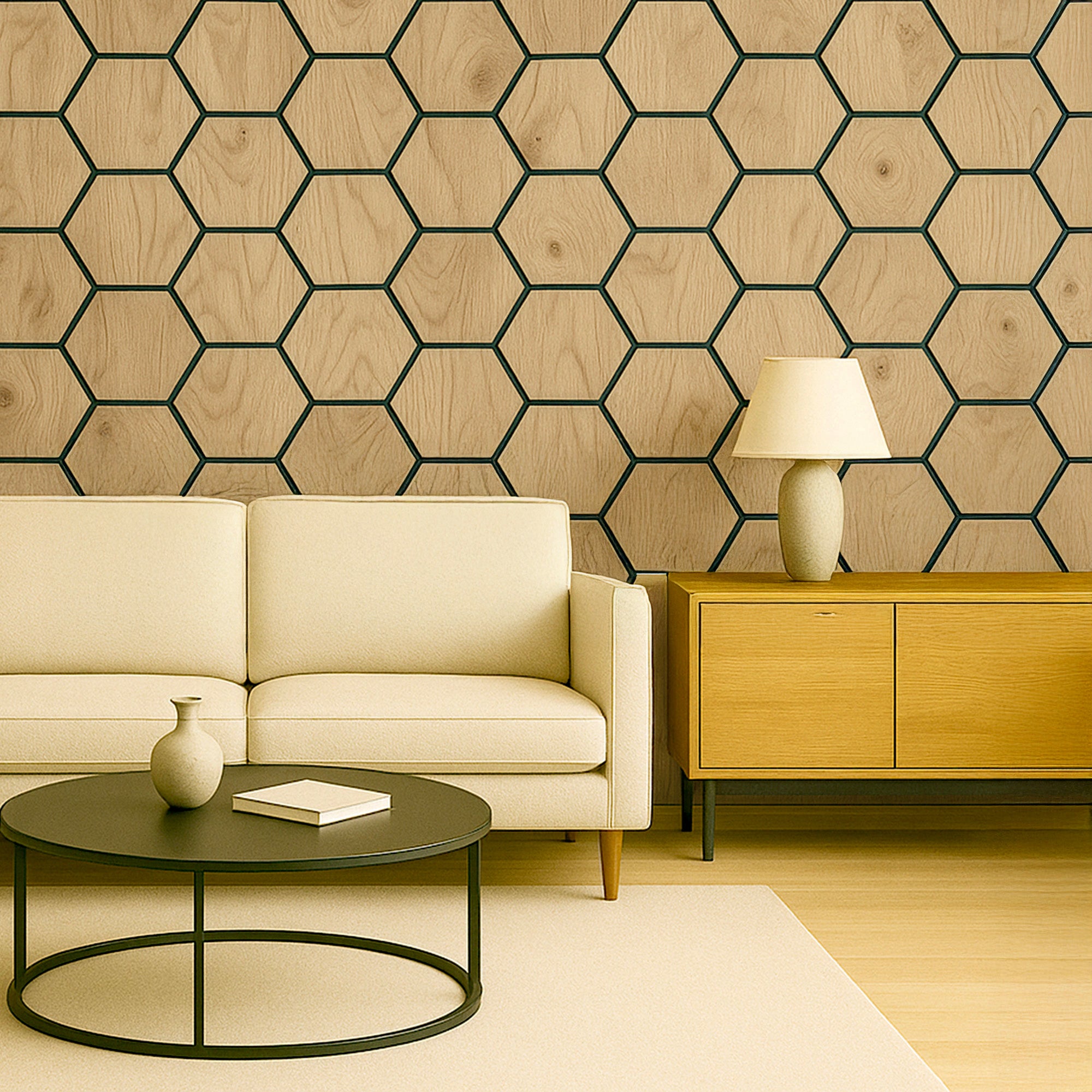 • 4 x Natural Oak Hexagon Acoustic Wall Panel (700×600mm felt base)
