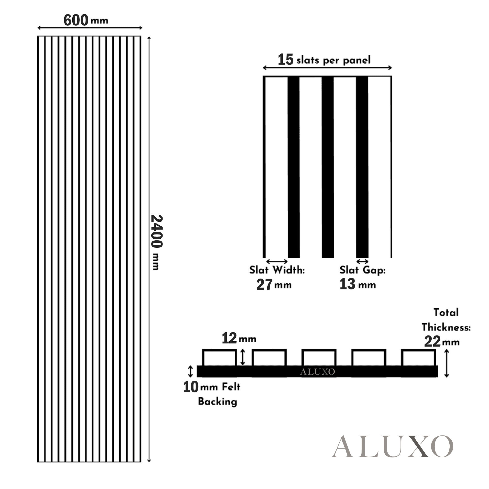 Elevate your space with striking slatted wall and ceiling panels featuring a solid wood core mounted on sound-absorbing PET felt backing to reduce room echo and ambient noise. Maintenance is simple — just vacuum or wipe clean with a damp cloth.