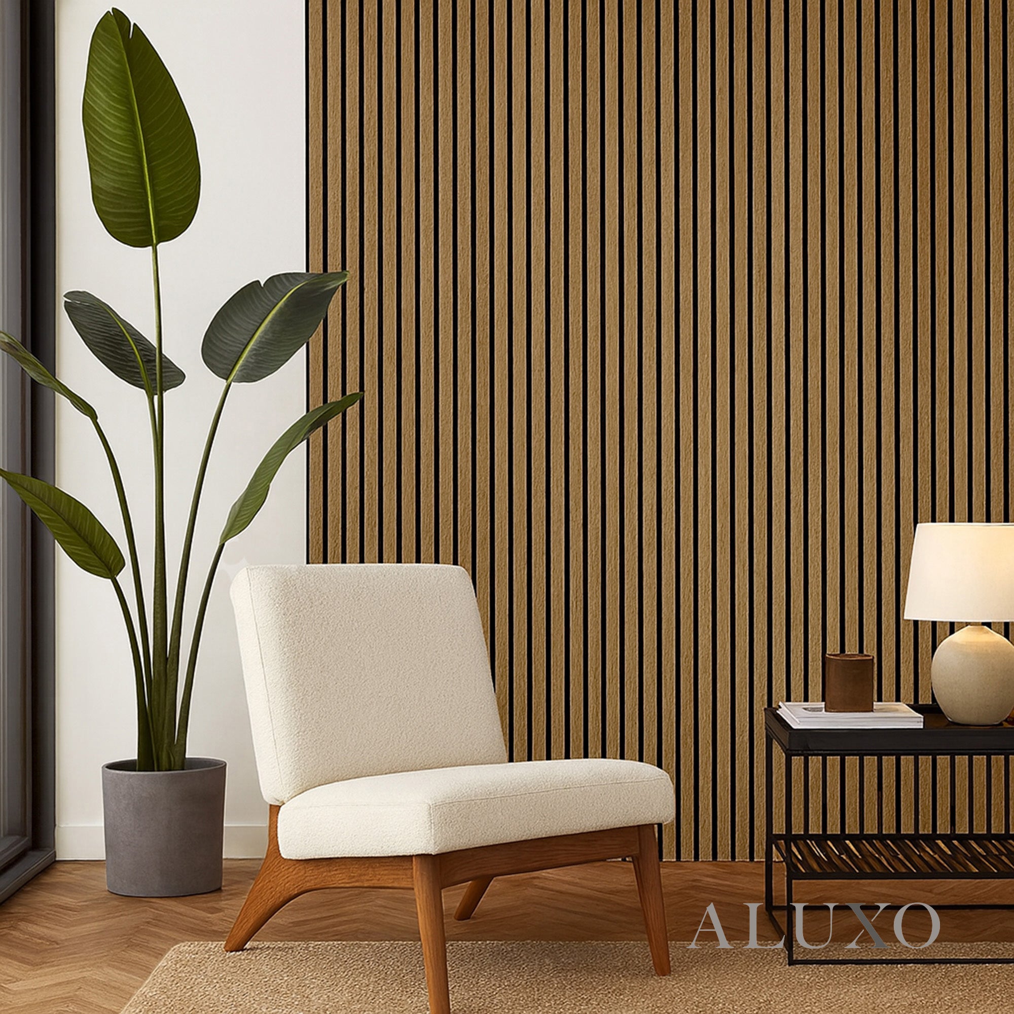 Bring timeless warmth and texture to your home with our Natural Oak Acoustic Slatted Wall Panel. This light oak finish adds a touch of Scandinavian serenity while enhancing room acoustics. Aluxo-Track Aluxo-TrackCopy