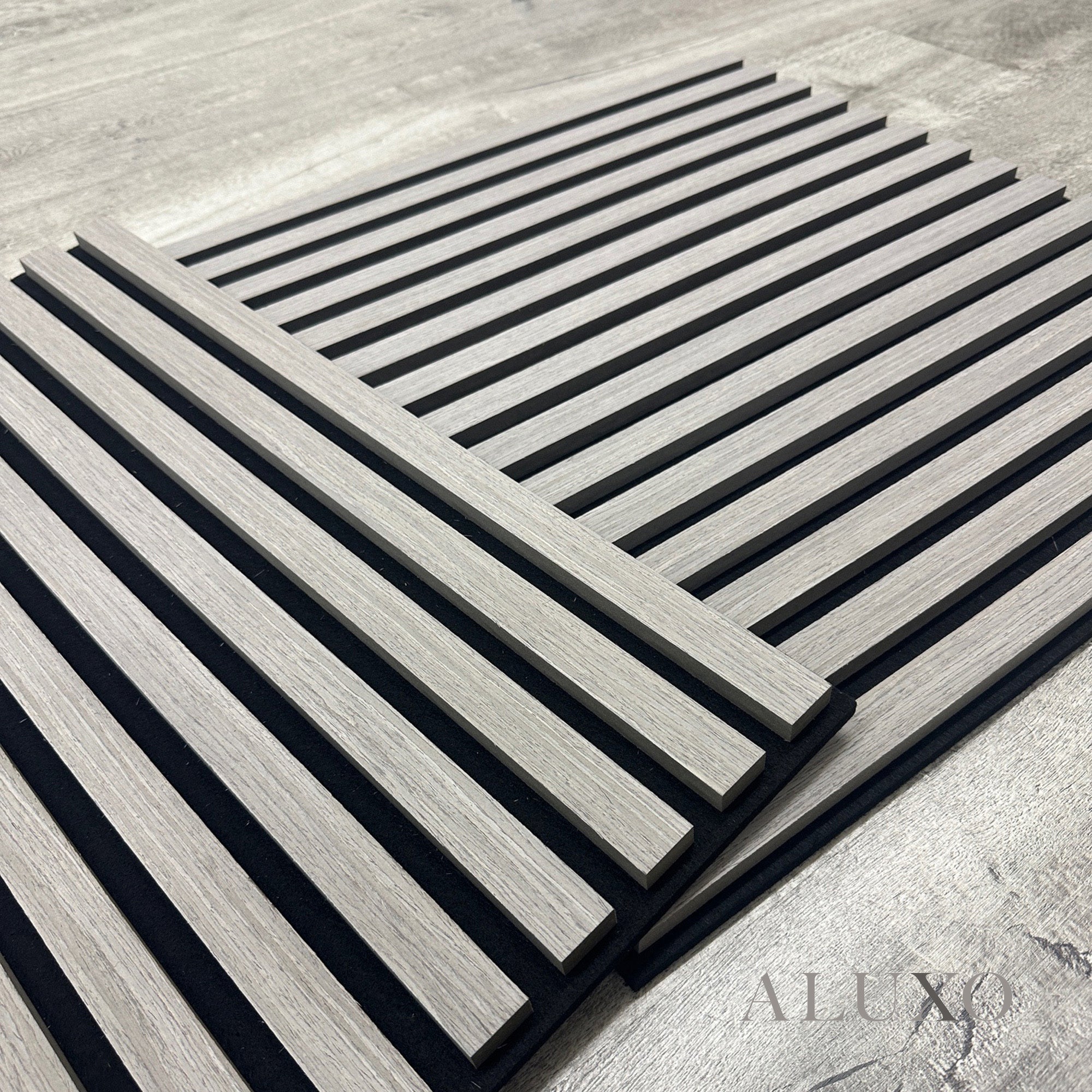 Transform your space with these stylish 60 x 60cm square panels, featuring an elegant Ash Grey wood core mounted on sound-dampening PET felt backing to significantly improve room acoustics by reducing reverberation and ambient noise.