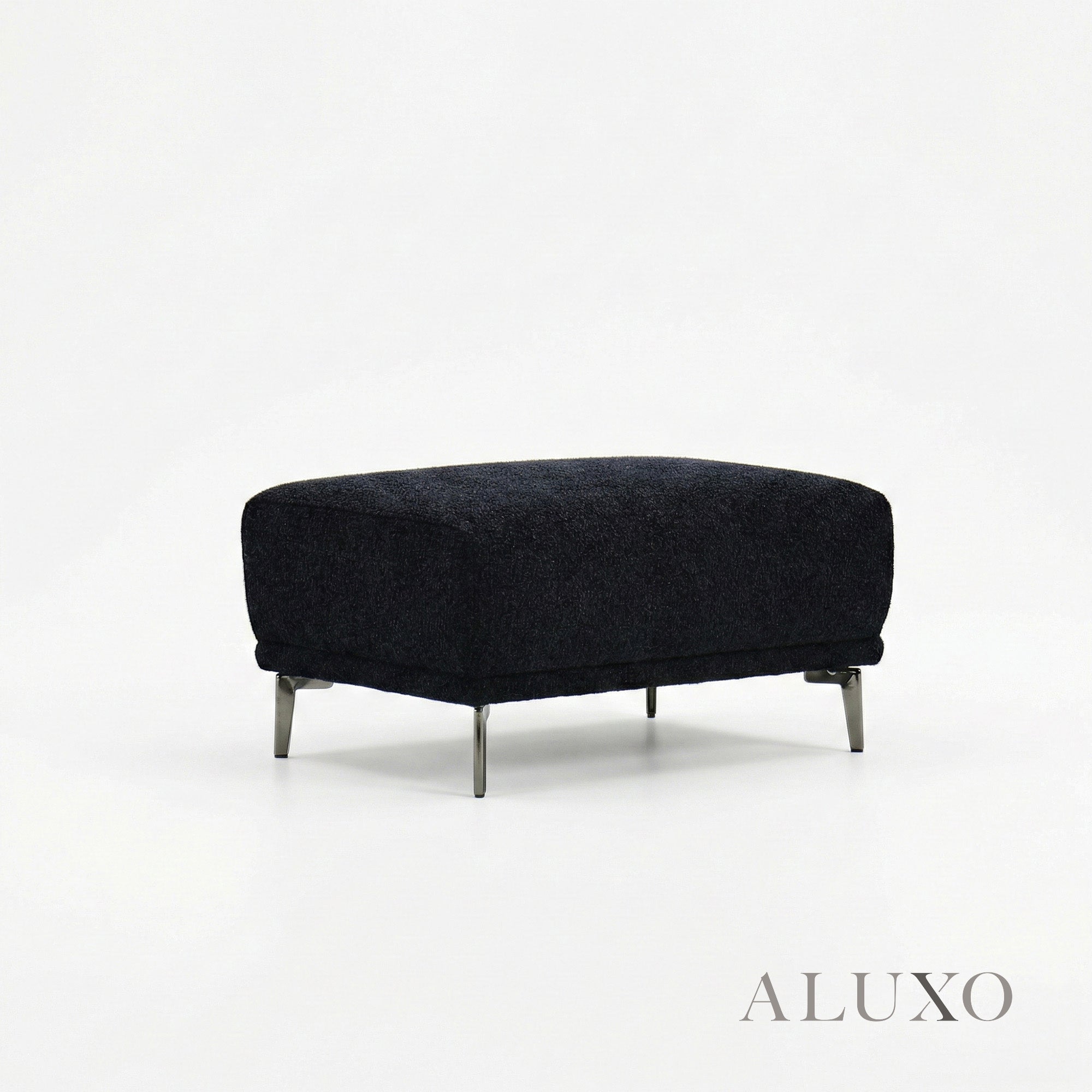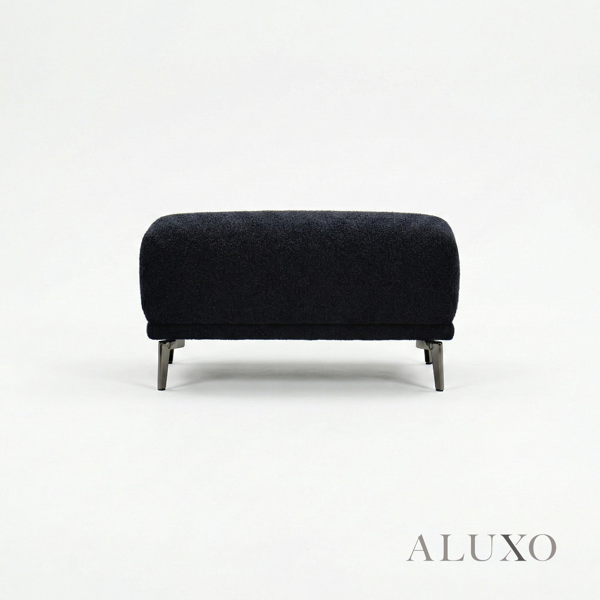 Designed to adapt to your lifestyle, this generous footstool works perfectly as a comfortable leg rest, a temporary coffee table surface, or an additional occasional seat for guests. Its subtly textured bouclé surface maintains a rich, dramatic tone that anchors modern or monochrome interiors with ease. Aluxo-Key Aluxo-KeyCopy