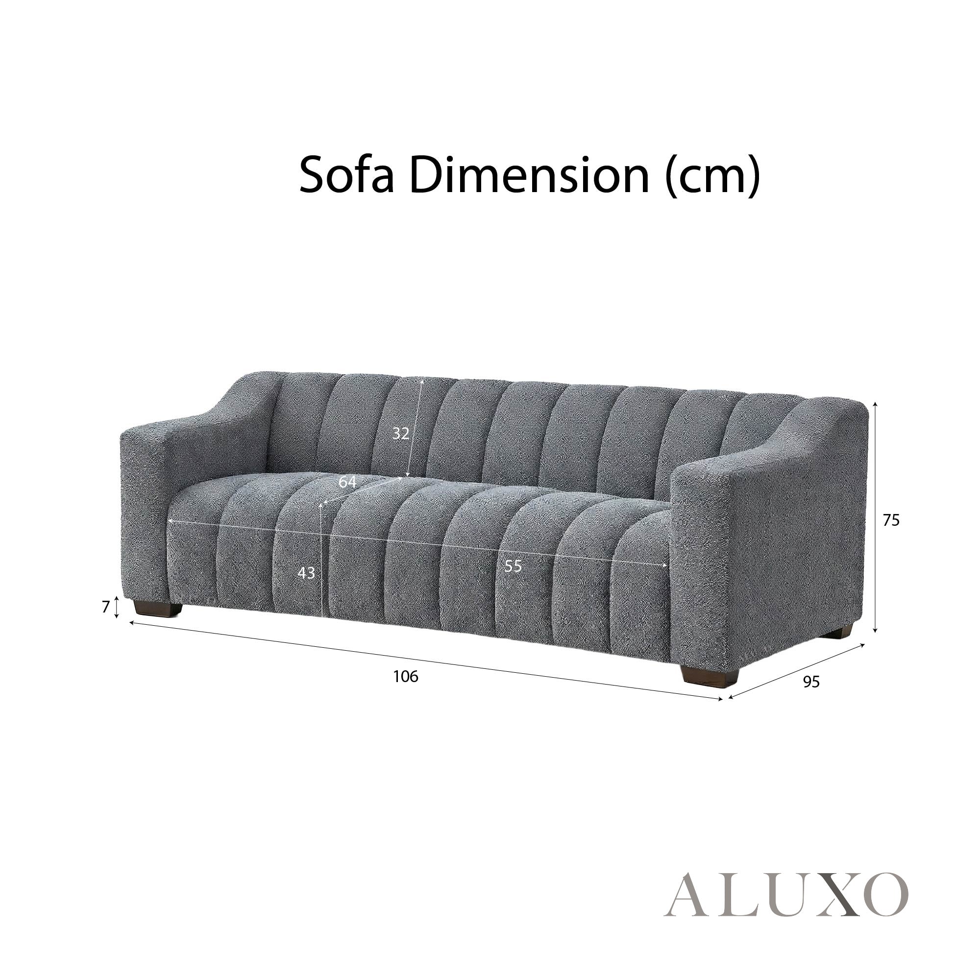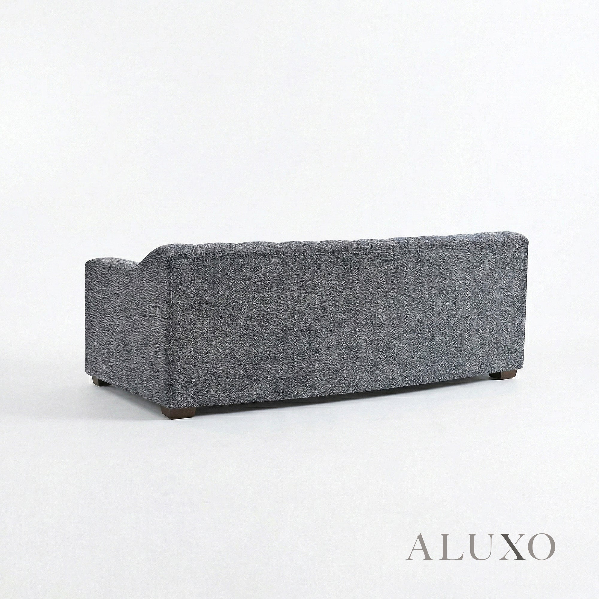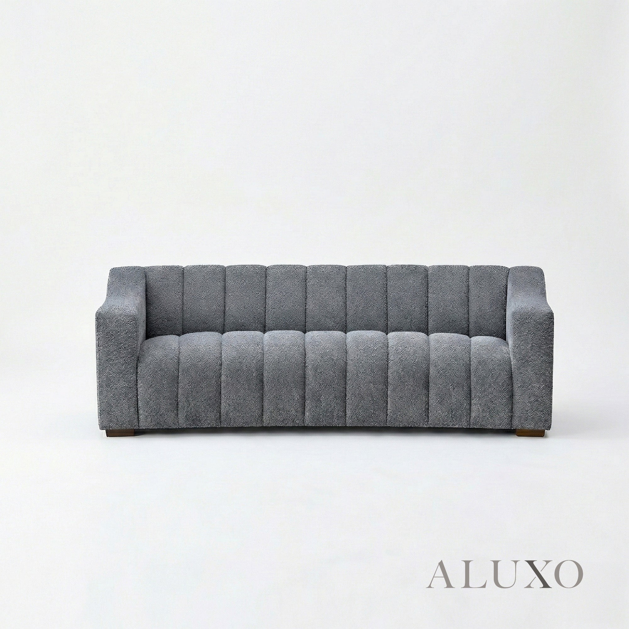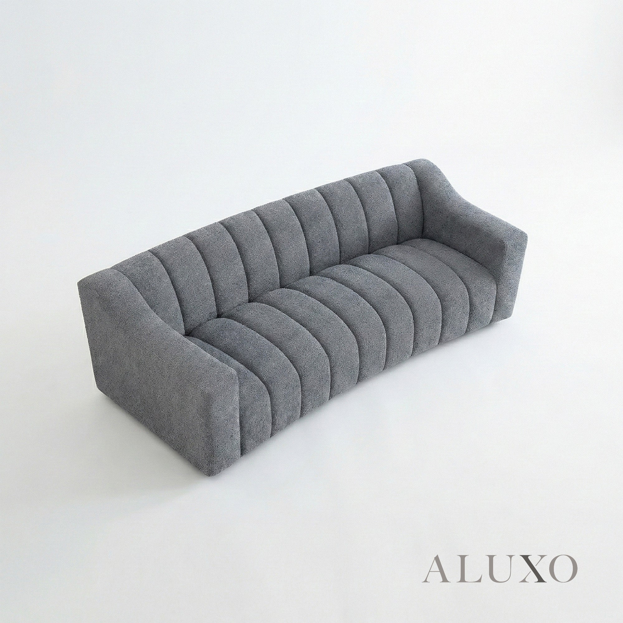 The ALUXO® Astoria 3 Seater Sofa features elegant deep channel stitching and is upholstered in a stunning Iron-coloured bouclé fabric. This design offers a bold, Chesterfield-inspired silhouette softened by gentle organic curves, making it both a sophisticated architectural centerpiece and an ultra-comfortable sanctuary for relaxation. Aluxo-Track Aluxo-TrackCopy