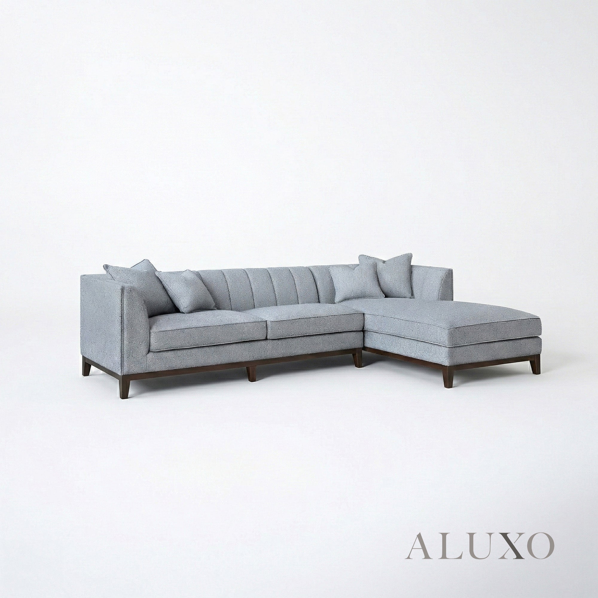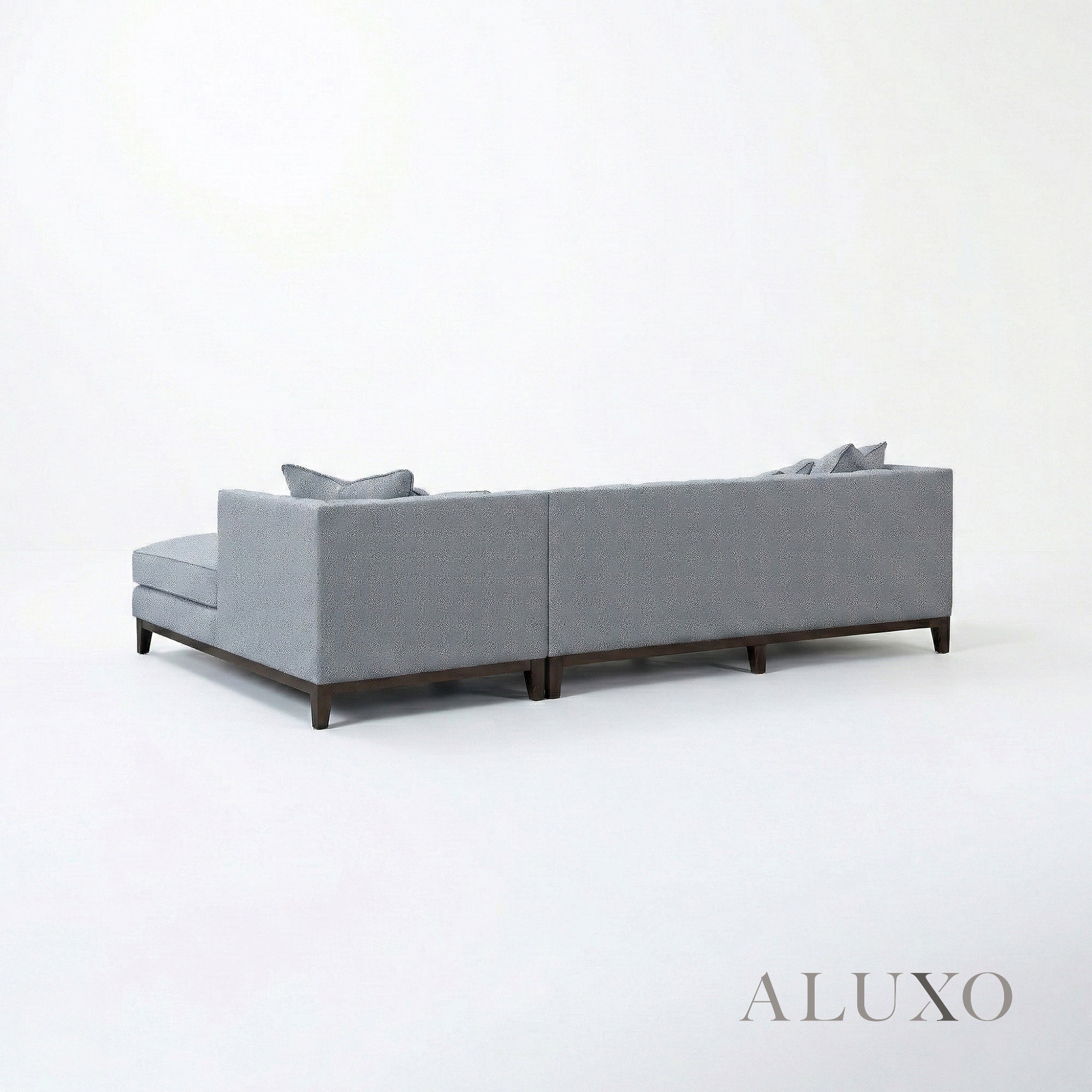 The ALUXO® Cooper Corner Sofa sits elevated on a signature wooden plinth, proudly showcasing Mid-Century comfort and architectural design. With its squared edges, sleek lines, and minimalist silhouette, this timeless piece offers both statement aesthetics and deep, sumptuous comfort. Built for longevity, it is crafted from a robust wooden frame and high-resilience foam padding. Aluxo-Track Aluxo-TrackCopy