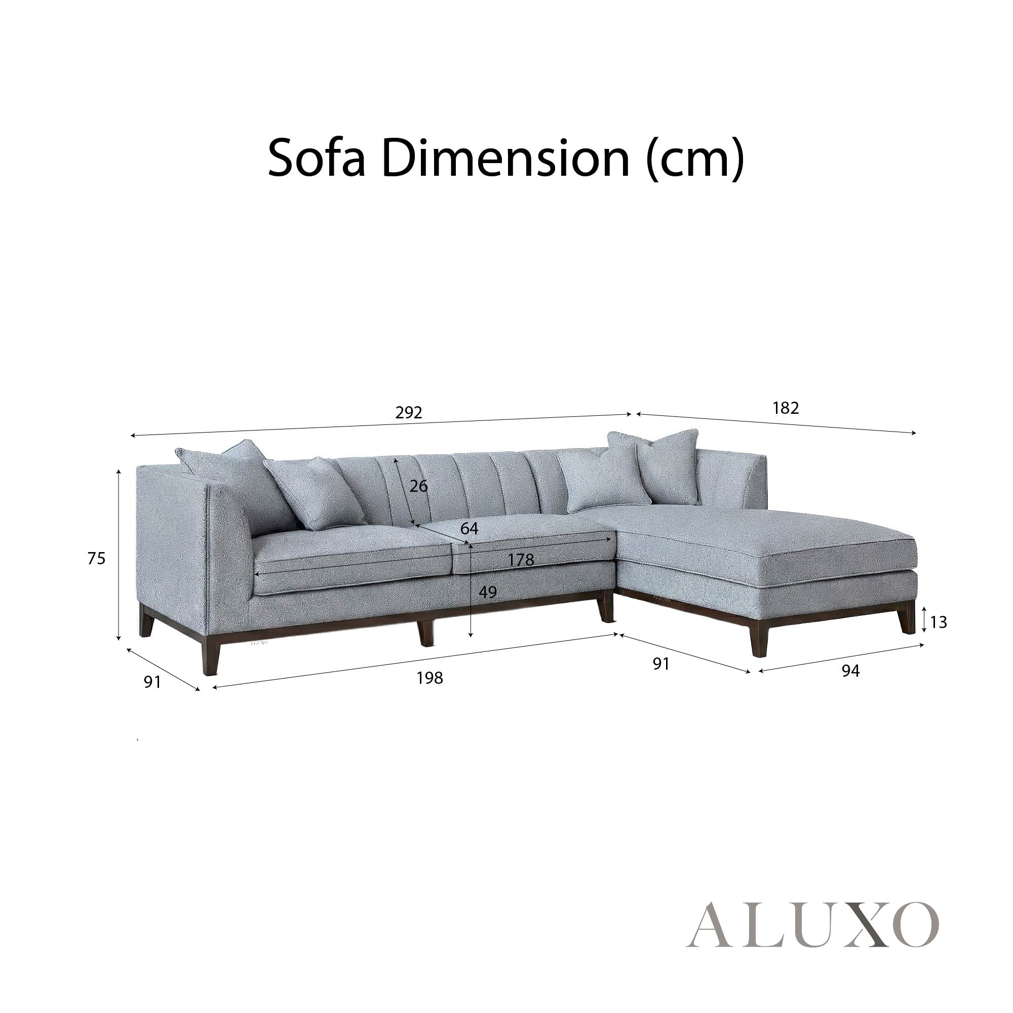 • Seat Area: 178 + 94cm (L) x 64 + 91cm (D)
