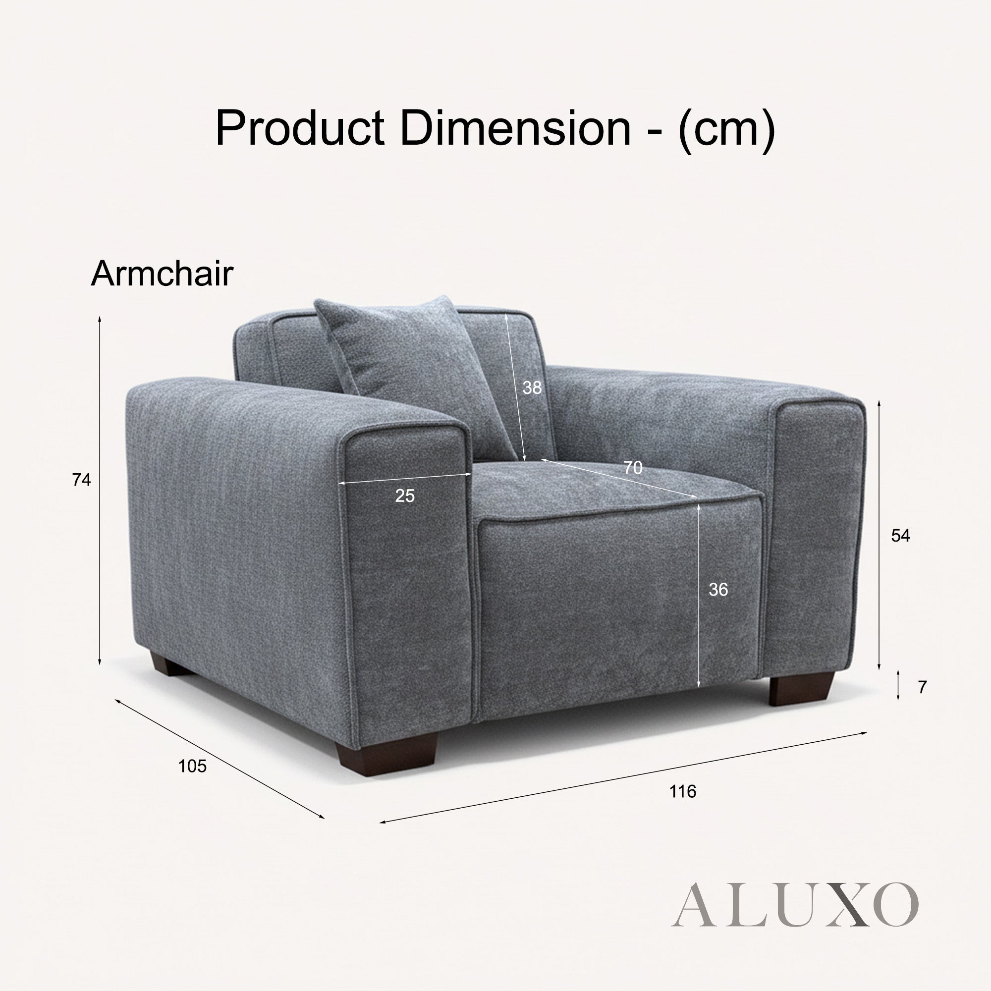 Supported by a durable hardwood frame and layered with high-resilience foam, this sofa combines timeless aesthetics with long-lasting durability. Fully UK fire-retardant certified for peace of mind. Aluxo-Key Aluxo-KeyCopy