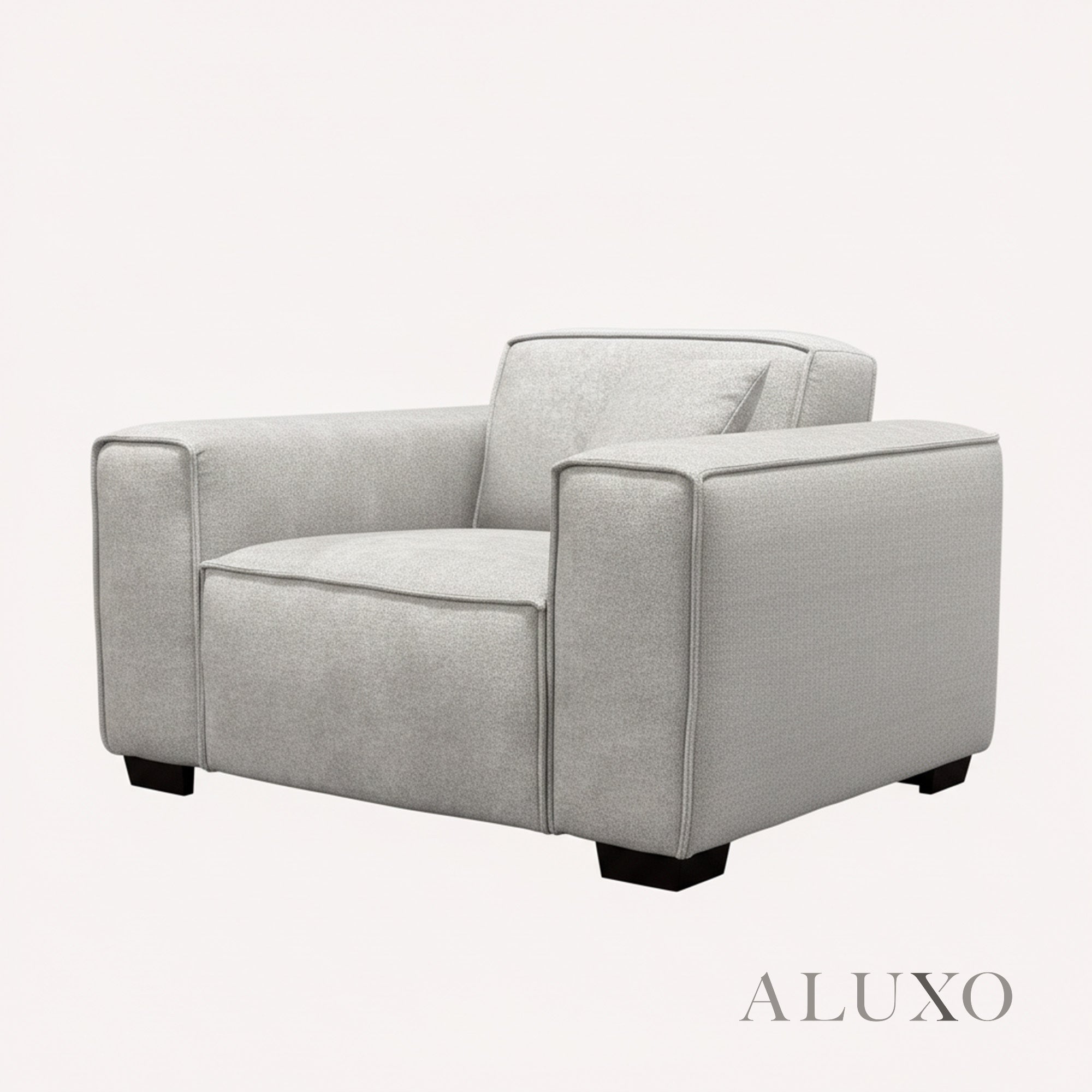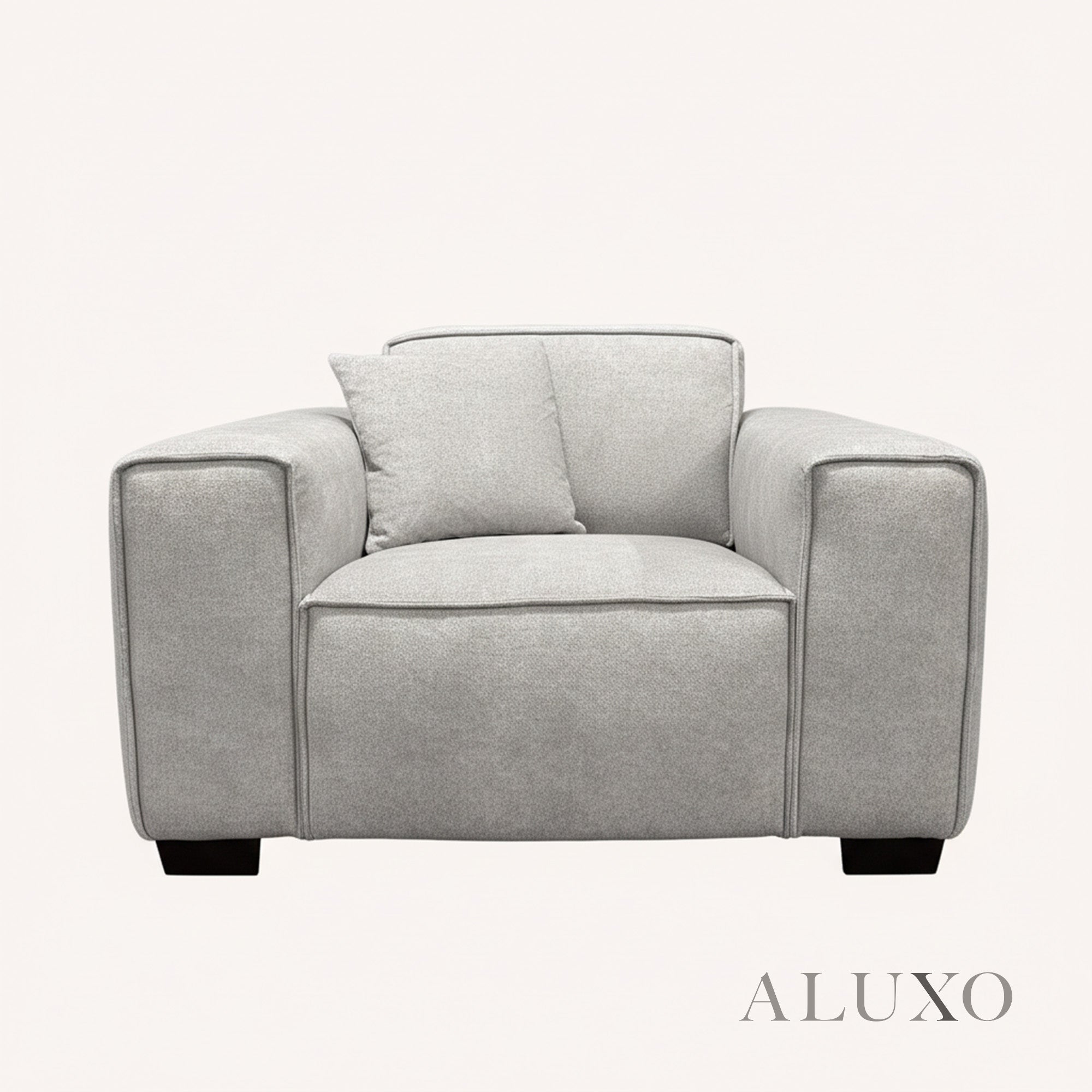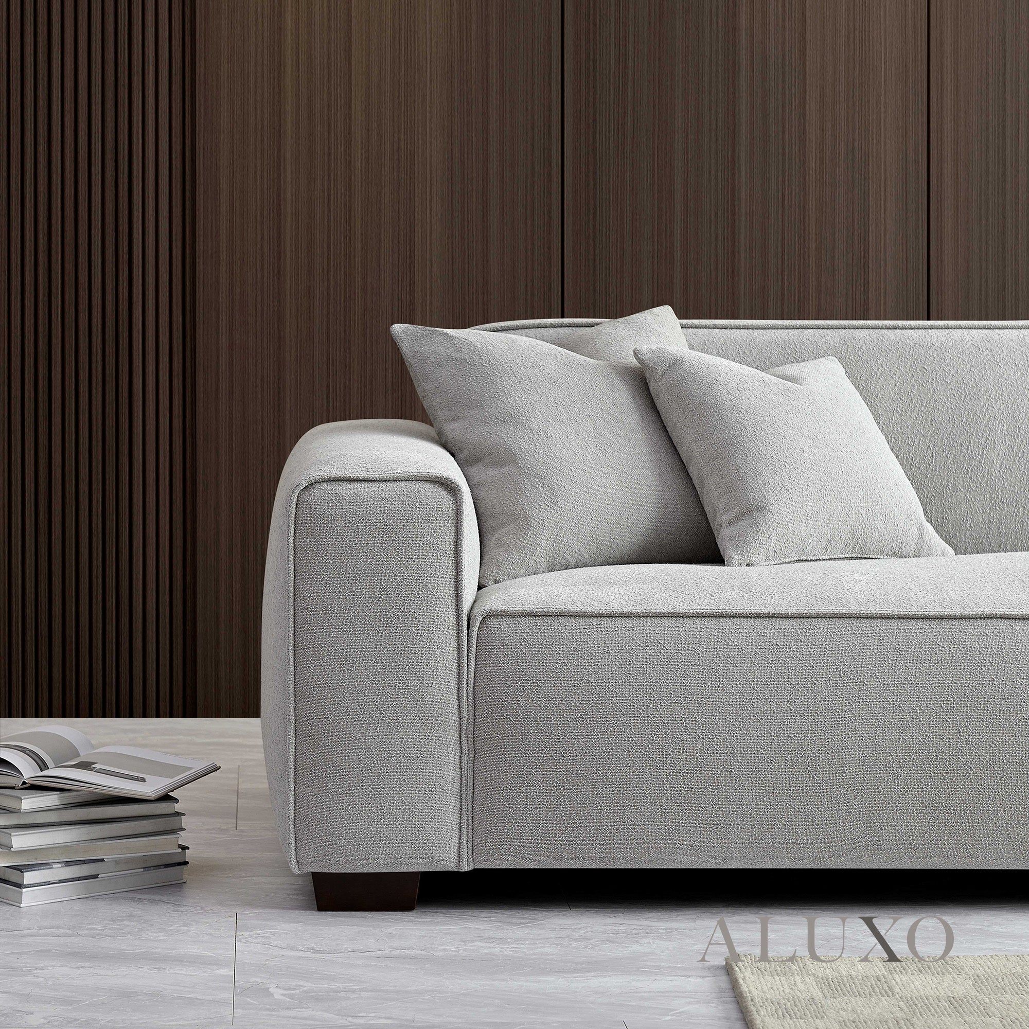The ALUXO® Dakota Sofa Collection in Pebble Grey Bouclé brings calm sophistication and tactile warmth to modern interiors. Its soft, tonal grey hue and feather-filled construction create a perfect balance of sculptural form and indulgent comfort. Aluxo-Track Aluxo-TrackCopy
