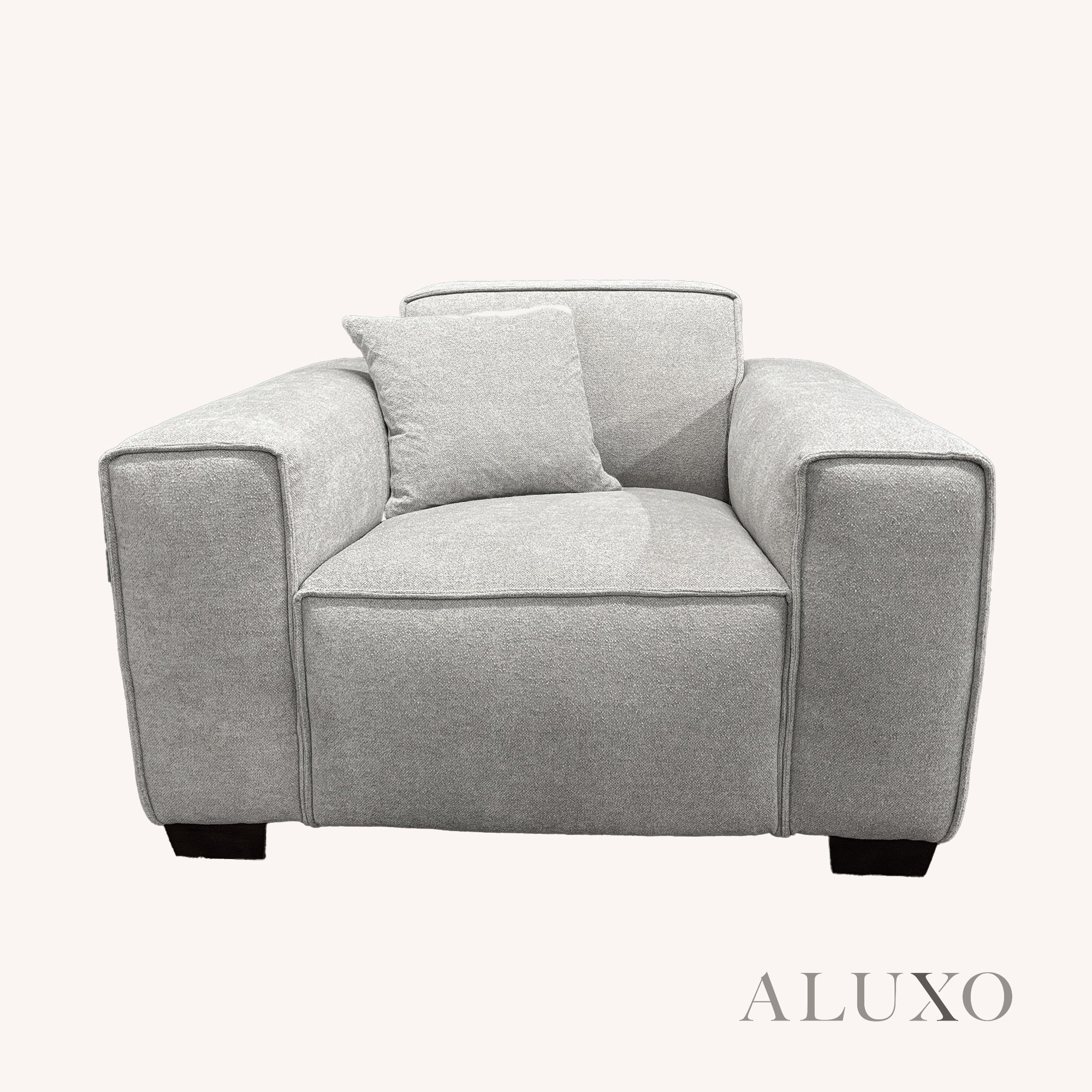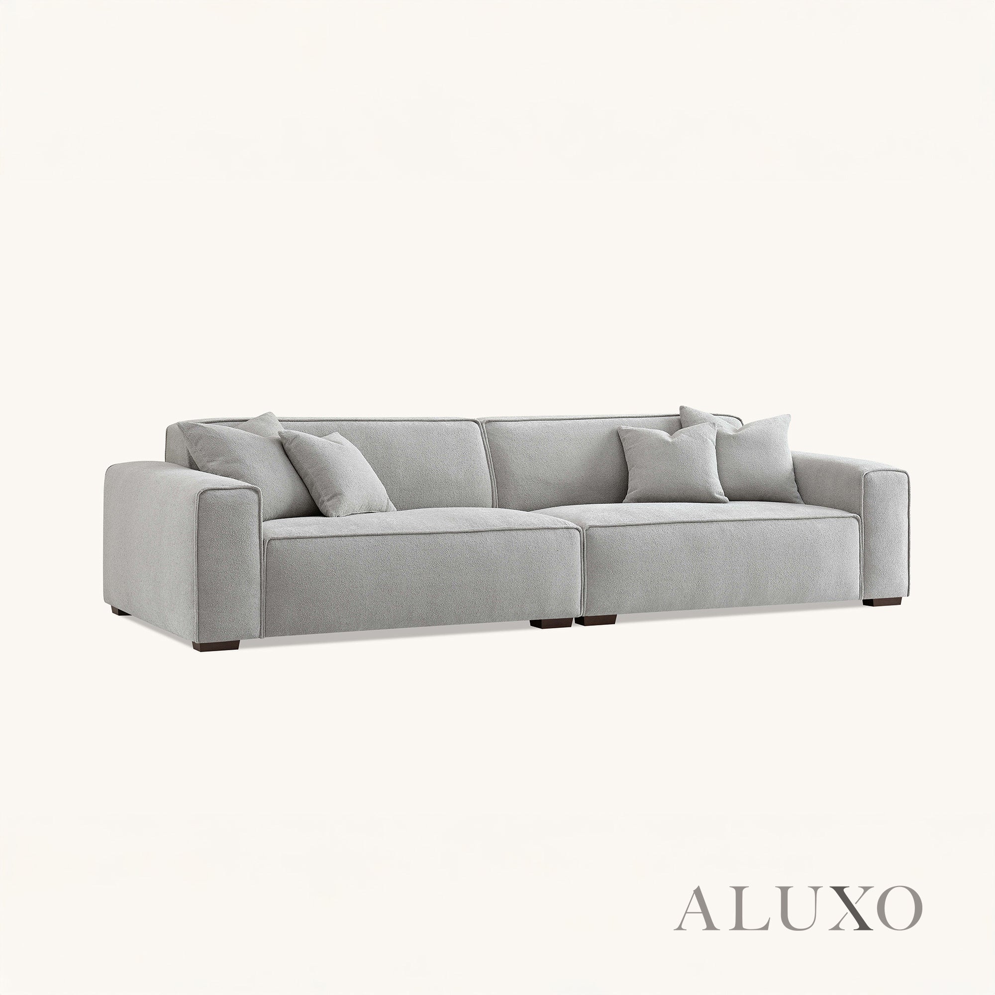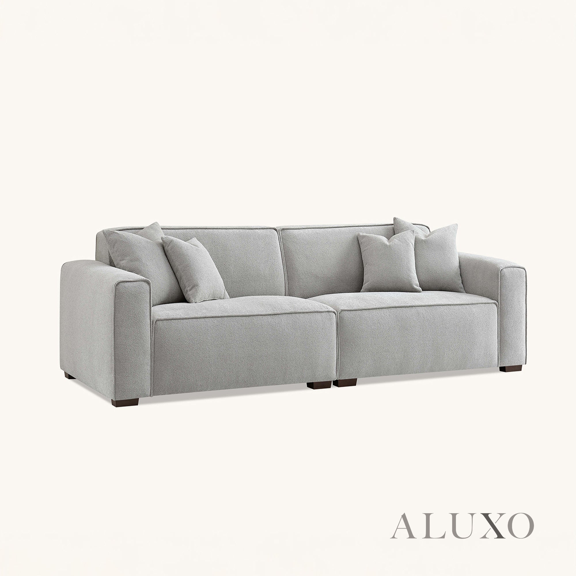 The ALUXO® Dakota Sofa Collection in Pebble Grey Bouclé brings calm sophistication and tactile warmth to modern interiors. Its soft, tonal grey hue and feather-filled construction create a perfect balance of sculptural form and indulgent comfort. Aluxo-Track Aluxo-TrackCopy
