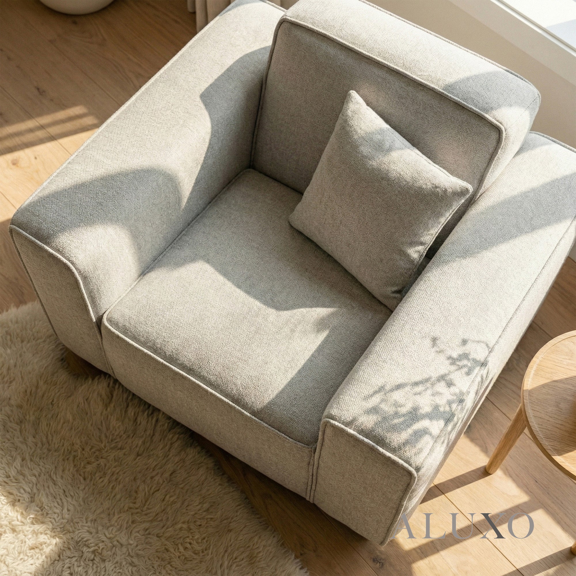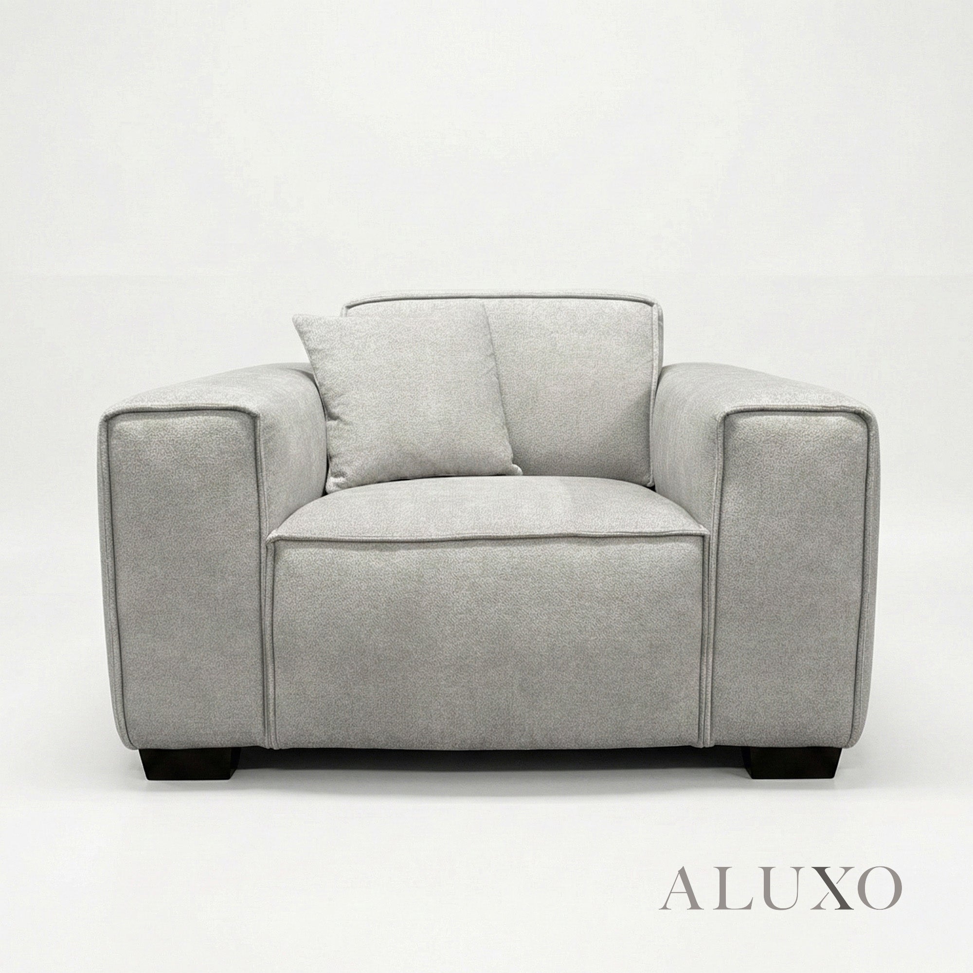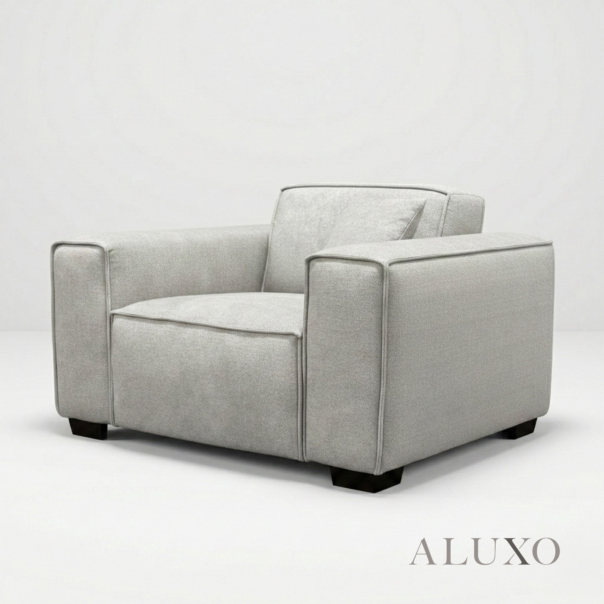 The ALUXO® Dakota Armchair in Pebble Grey Bouclé brings understated sophistication and tactile warmth to your personal space. Generously filled with natural duck feathers across the seat, arms, and fixed back, it delivers a refined sanctuary of indulgent comfort with a beautifully relaxed aesthetic. Aluxo-Track Aluxo-TrackCopy