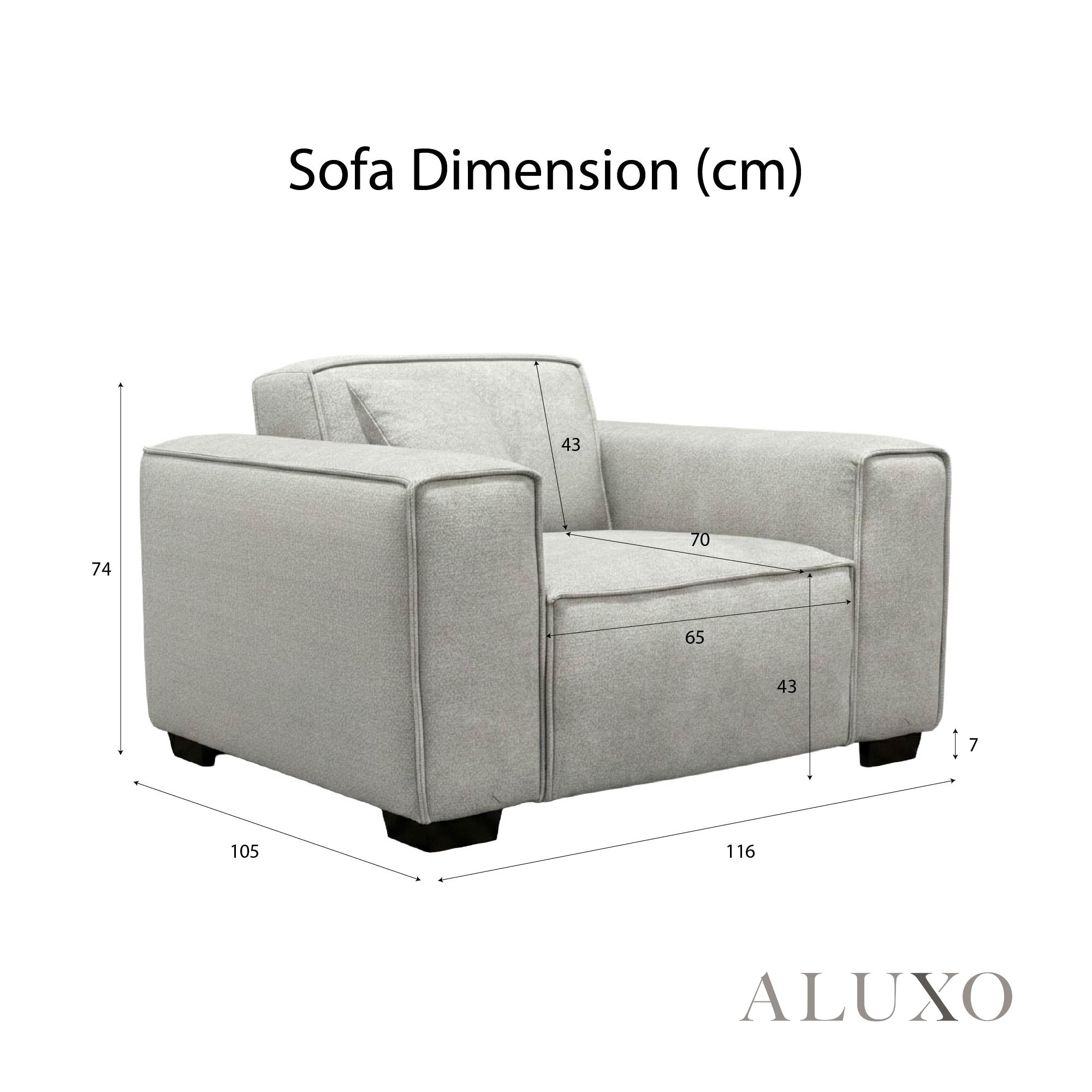 • Seat Cushion: 65cm (L) x 70cm (D) Aluxo-Dim Aluxo-DimCopy
