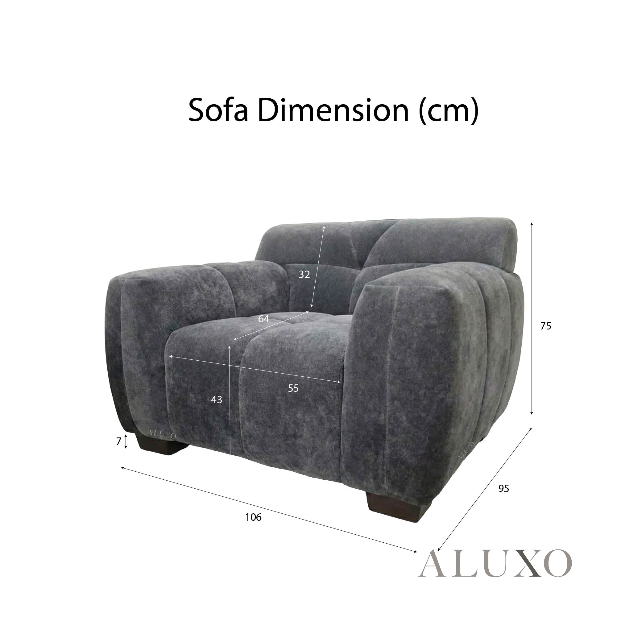 • Armchair: 106cm (L) x 95cm (D) x 75cm (H)