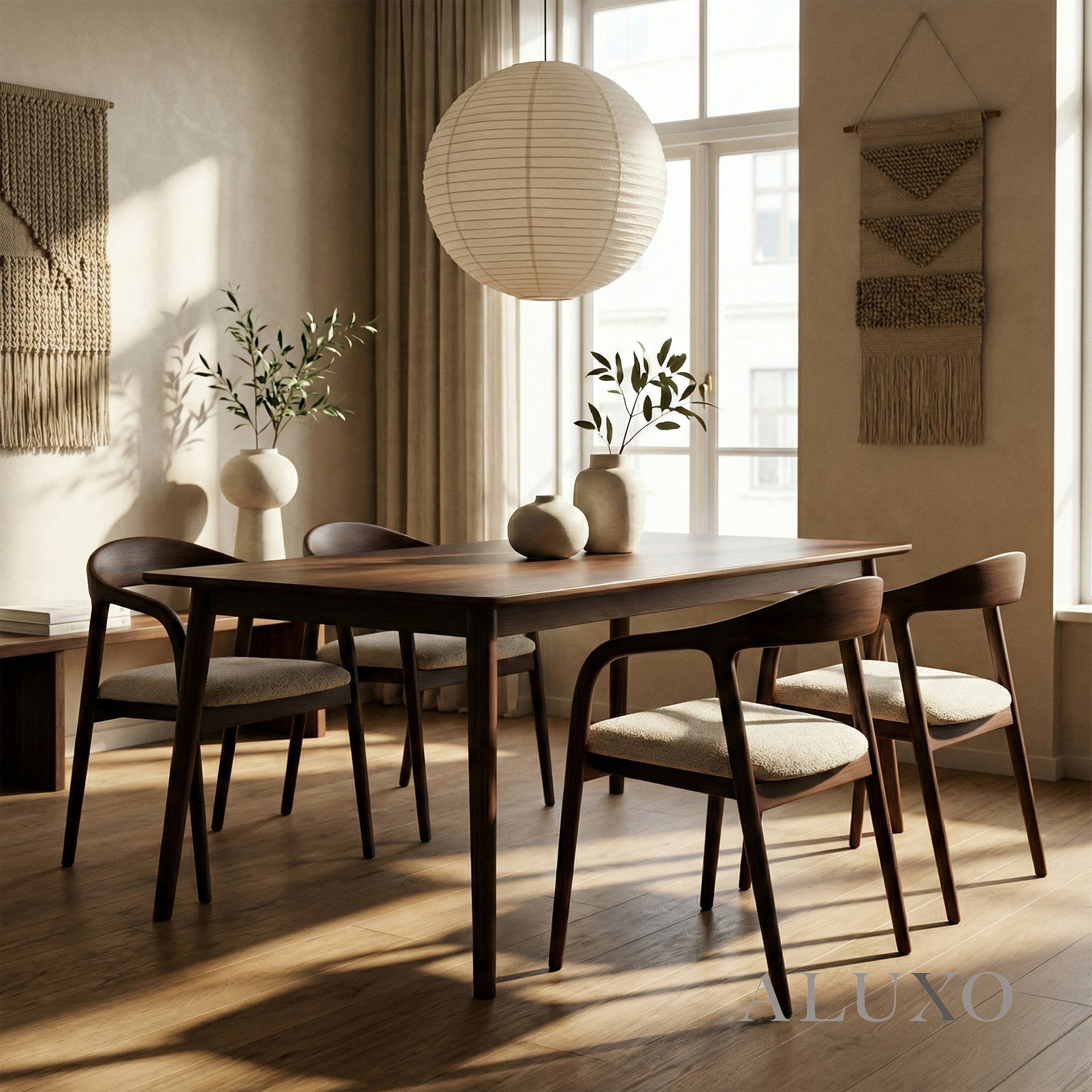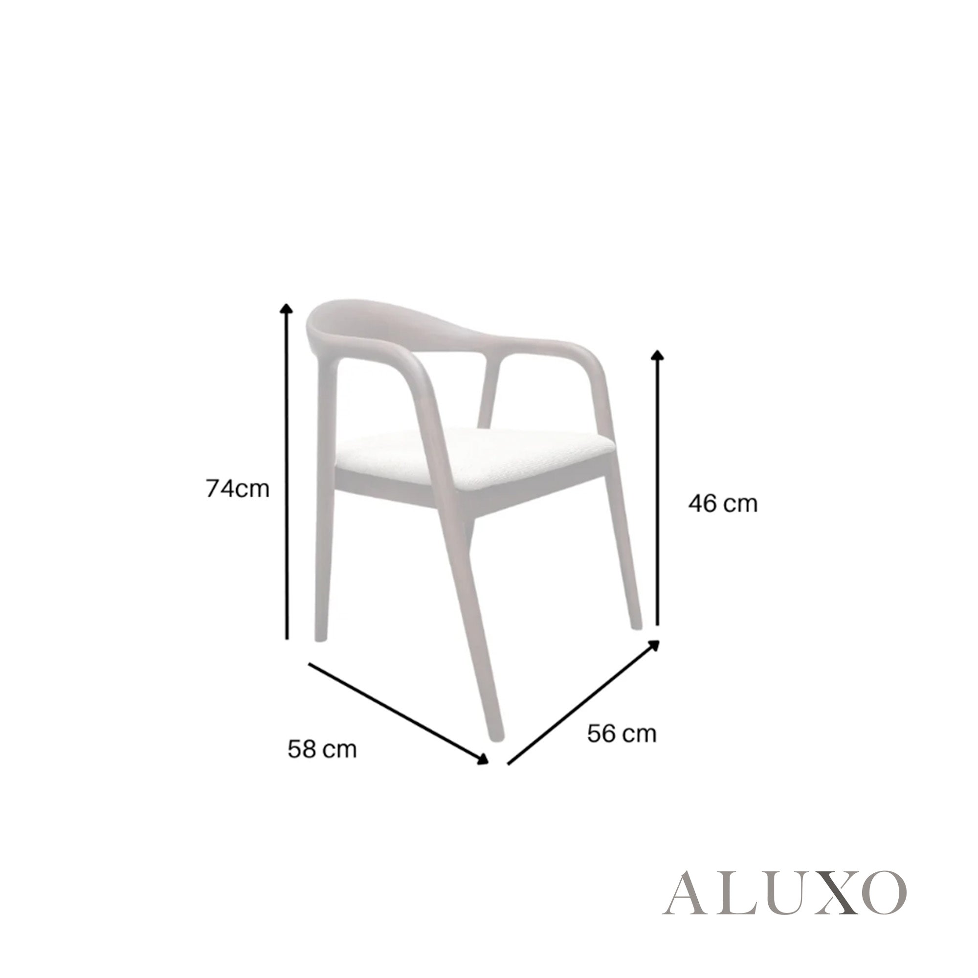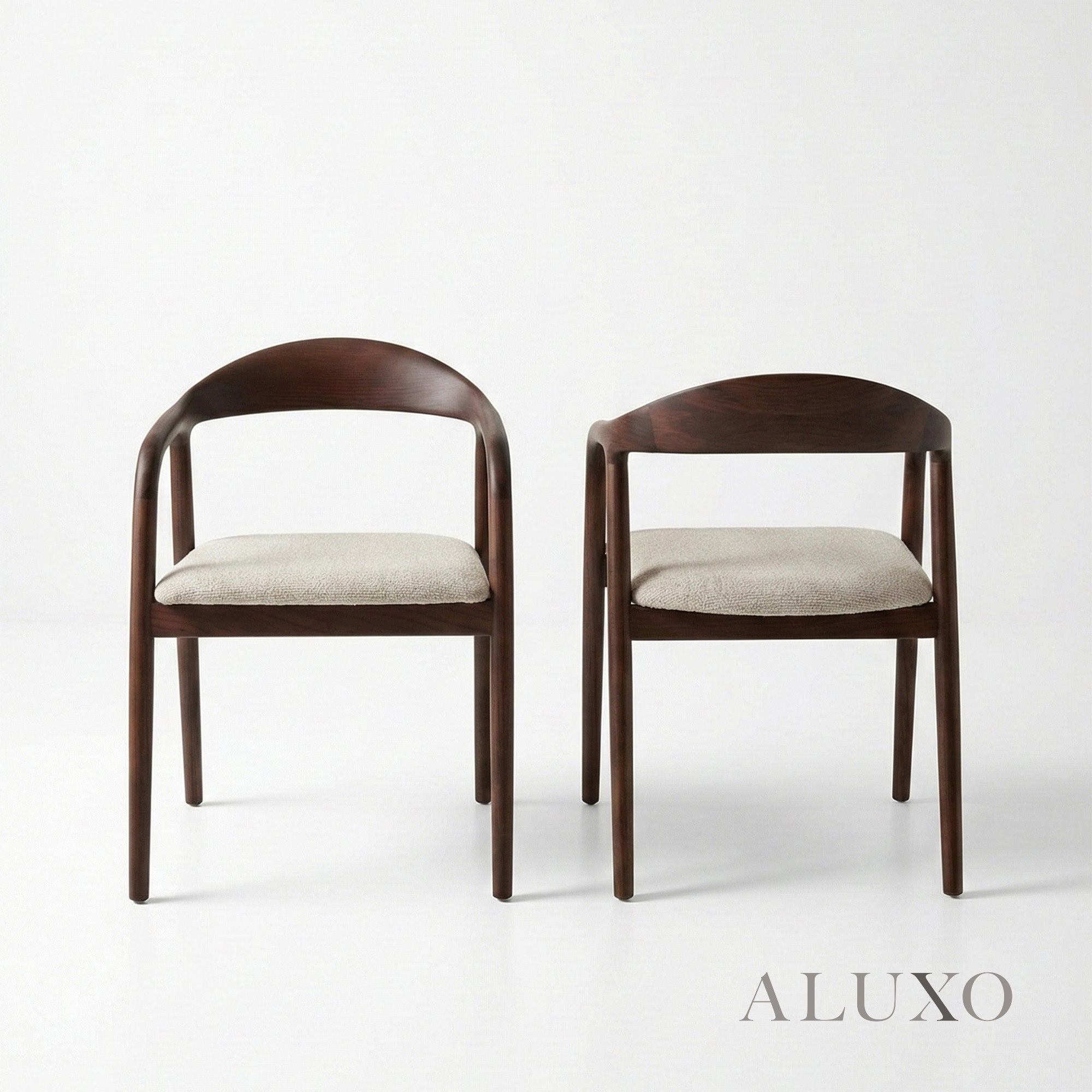 Bring understated elegance to your dining space with the ALUXO Tess dining chair, featuring a walnut-coloured frame paired with soft oatmeal bouclé upholstery. Sold as a set of two, this design balances comfort and visual lightness for modern dining interiors. Aluxo-Track Aluxo-TrackCopy