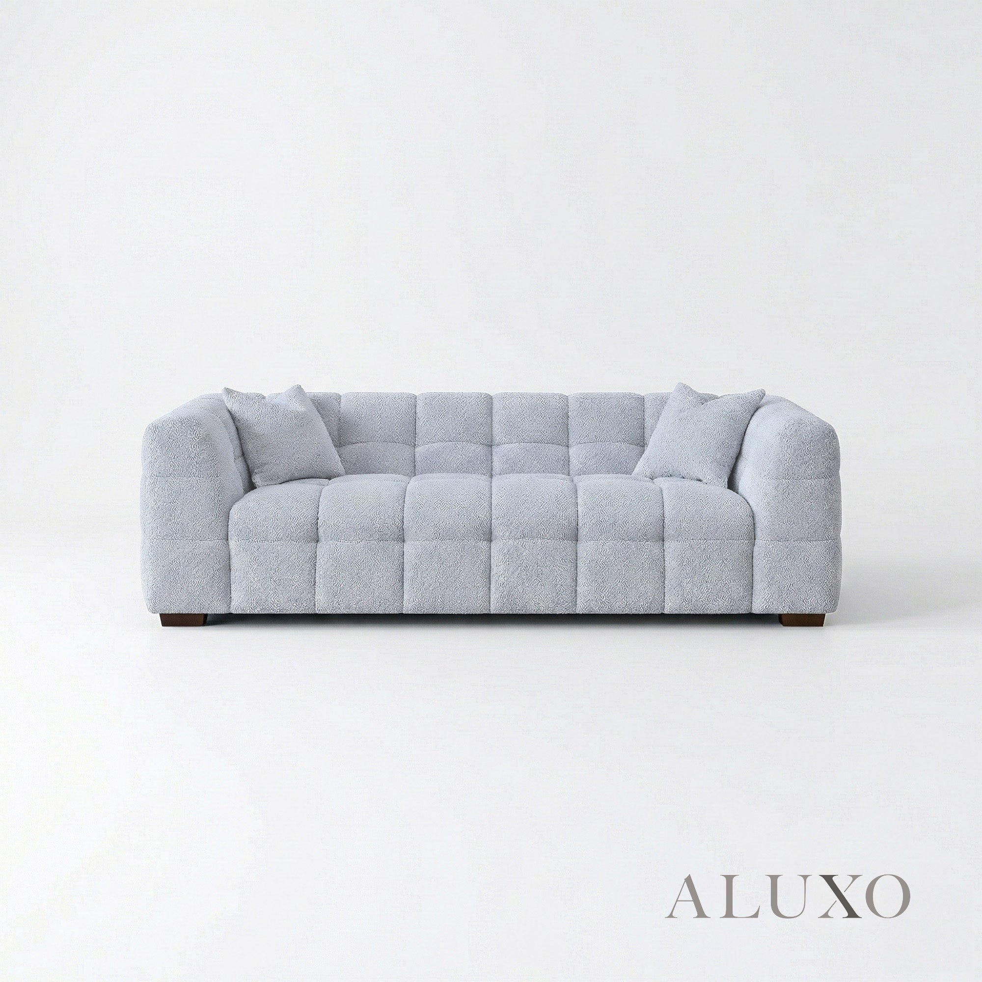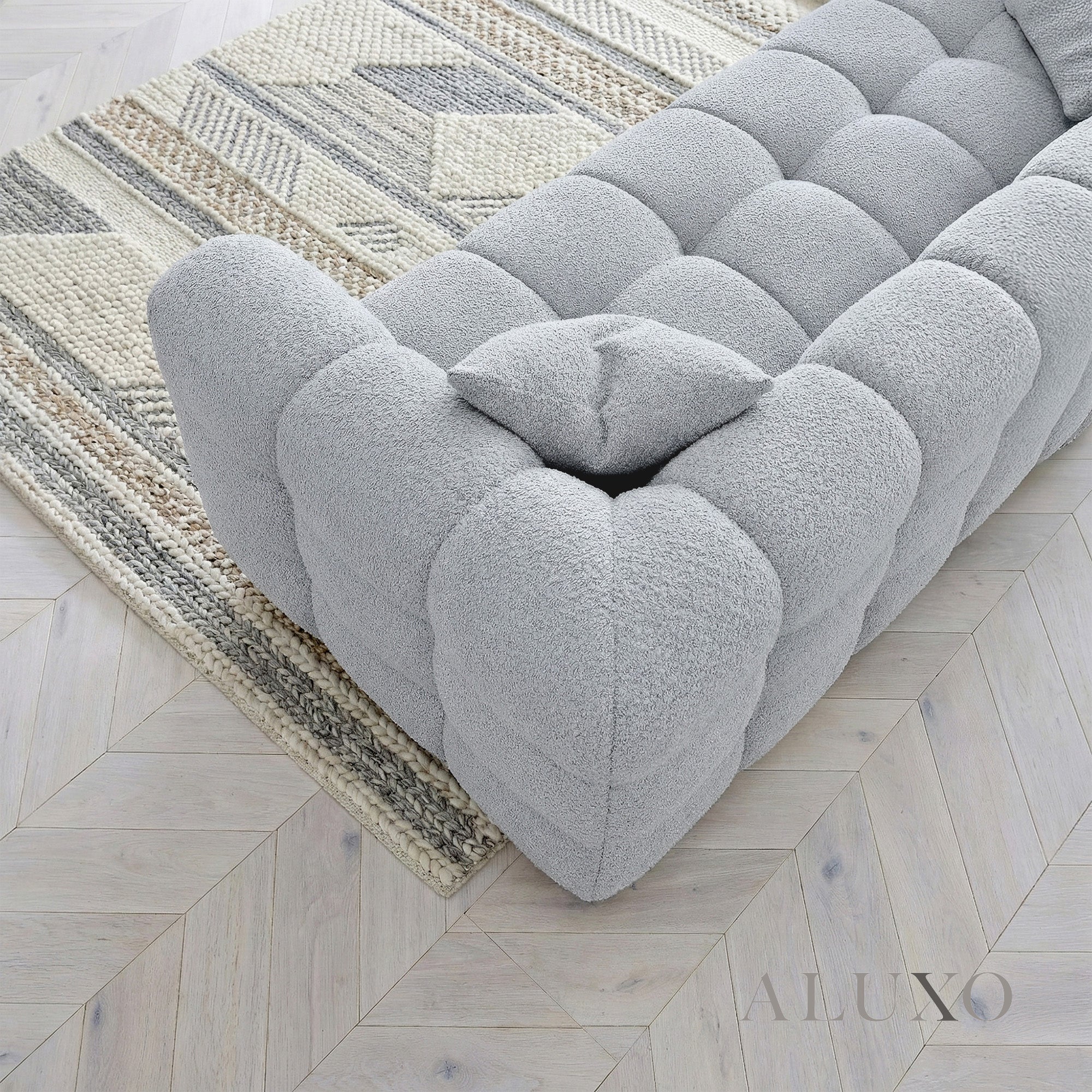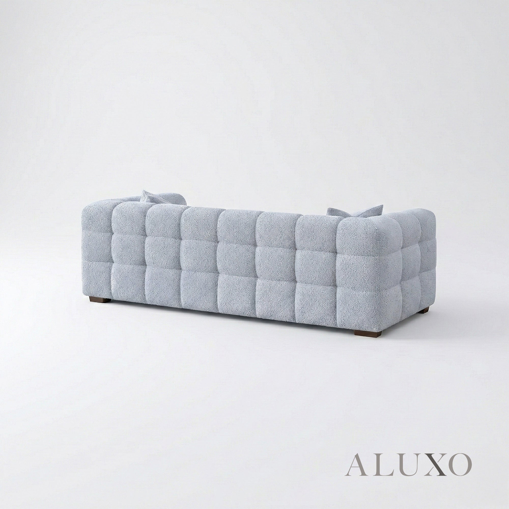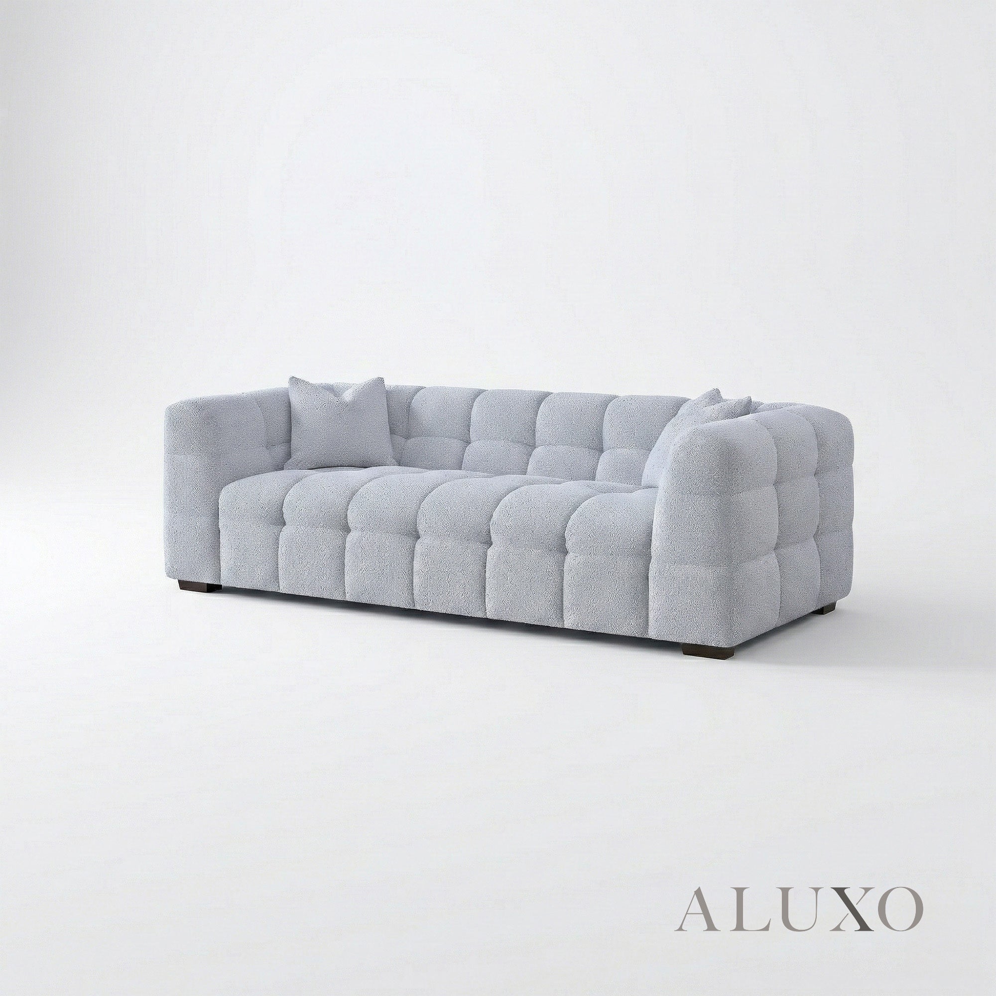 Create a space of subtle sophistication with the Tribeca 3-Seater Sofa. Wrapped in a tactile pearl-toned bouclé fabric, this piece merges gentle curves with sculptural form and deep channel stitching. Aluxo-Track Aluxo-TrackCopy Designed to offer both texture and refinement, it serves as an elegant focal point for the modern British home.