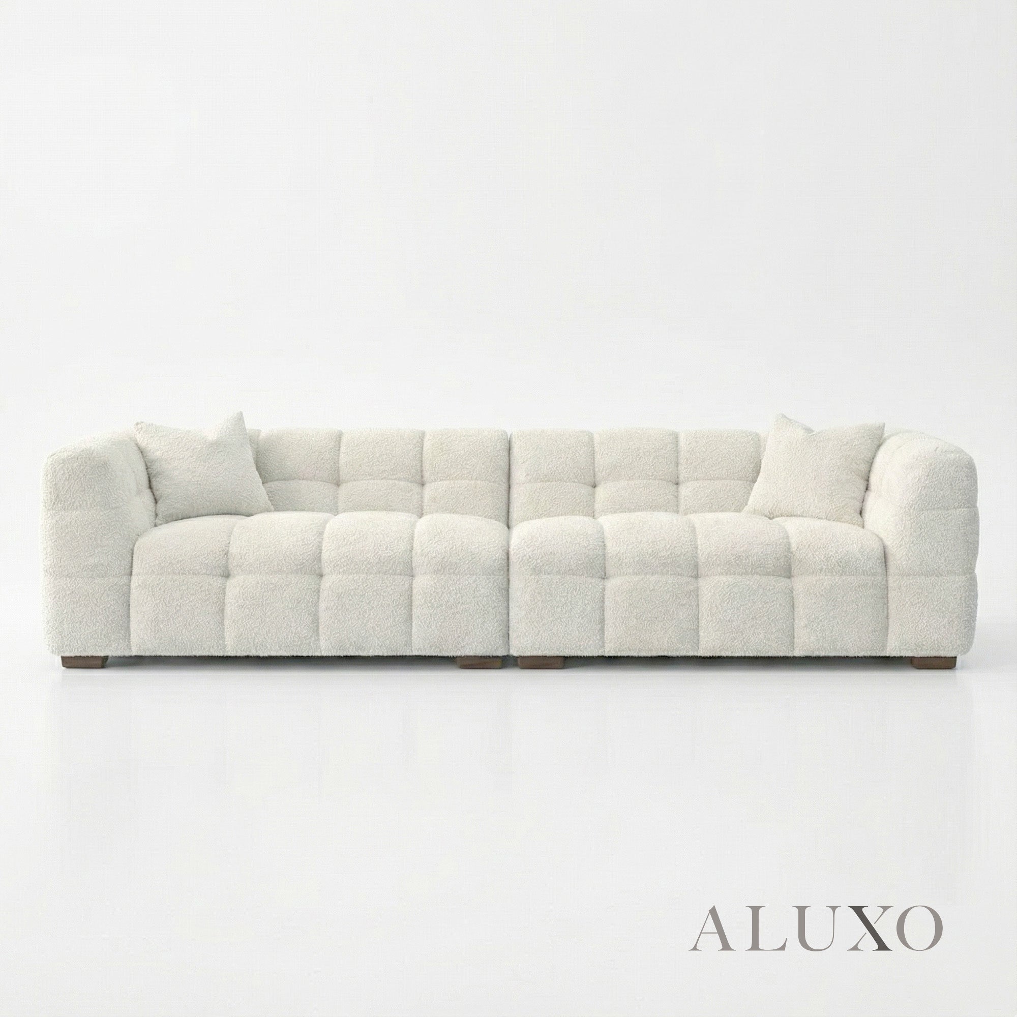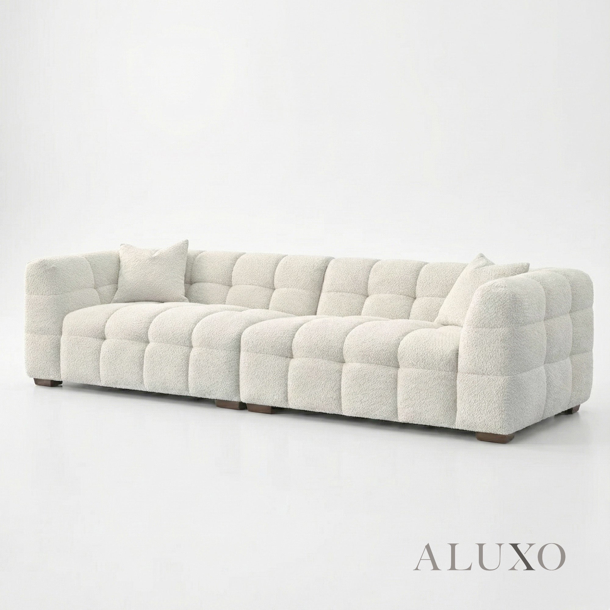 The generous 4-seater configuration offers ample room for relaxed family lounging or elegant entertaining. Crafted with a solid wood frame and layered with high-resilience foam, the structure provides enduring support and shape retention. The seating delivers a firmness level of 7/10 — meticulously engineered to be supportive yet comfortable for extended use. Aluxo-Key Aluxo-KeyCopy