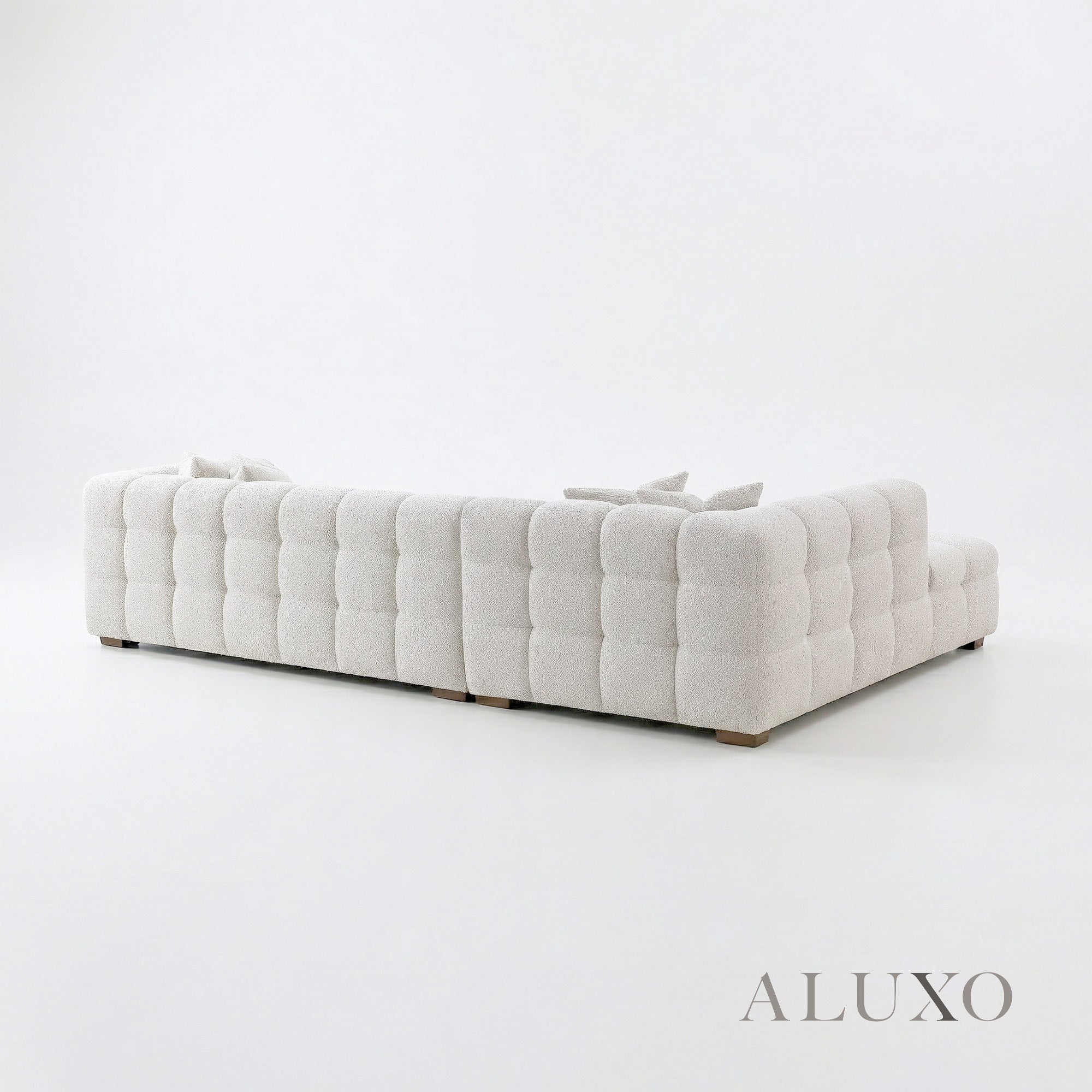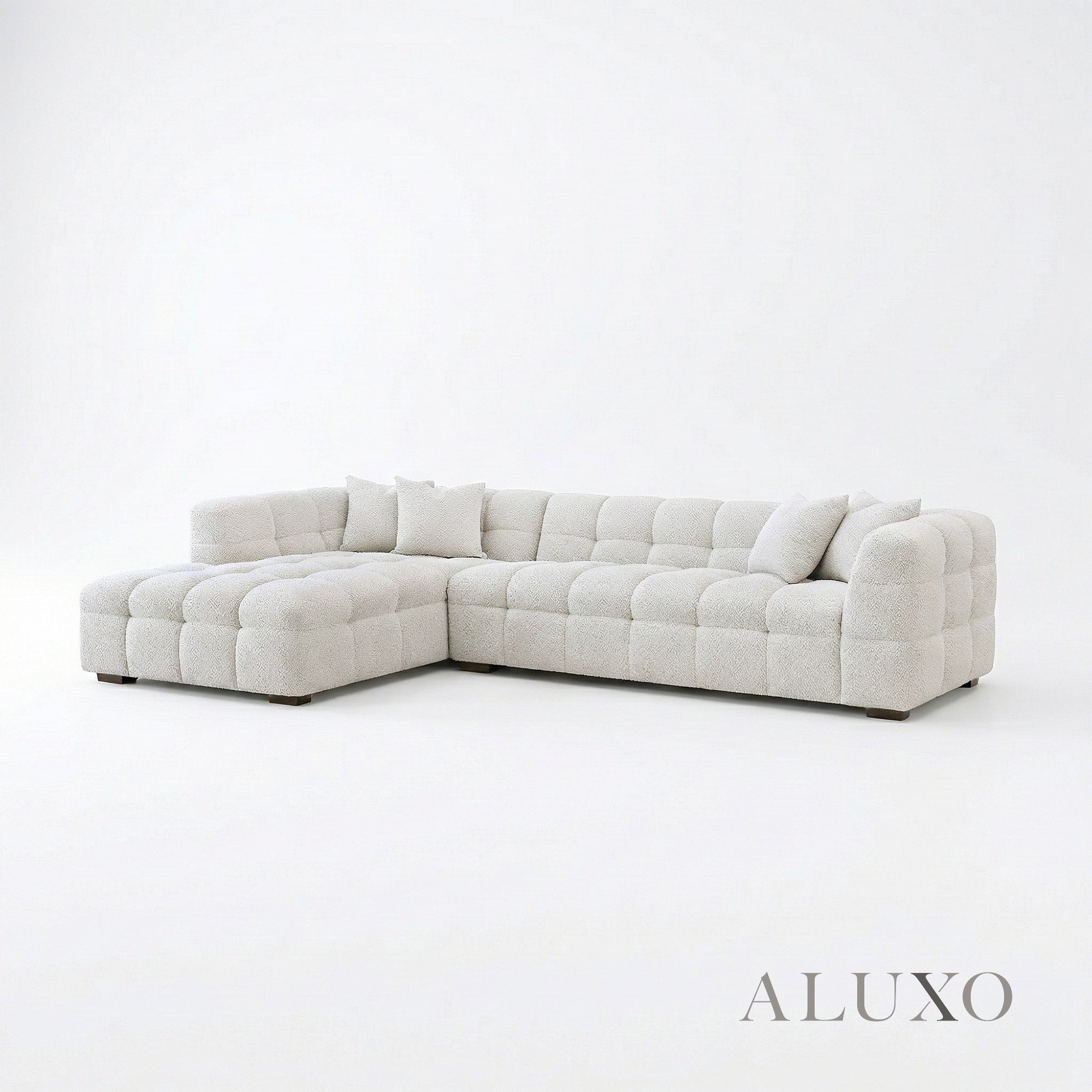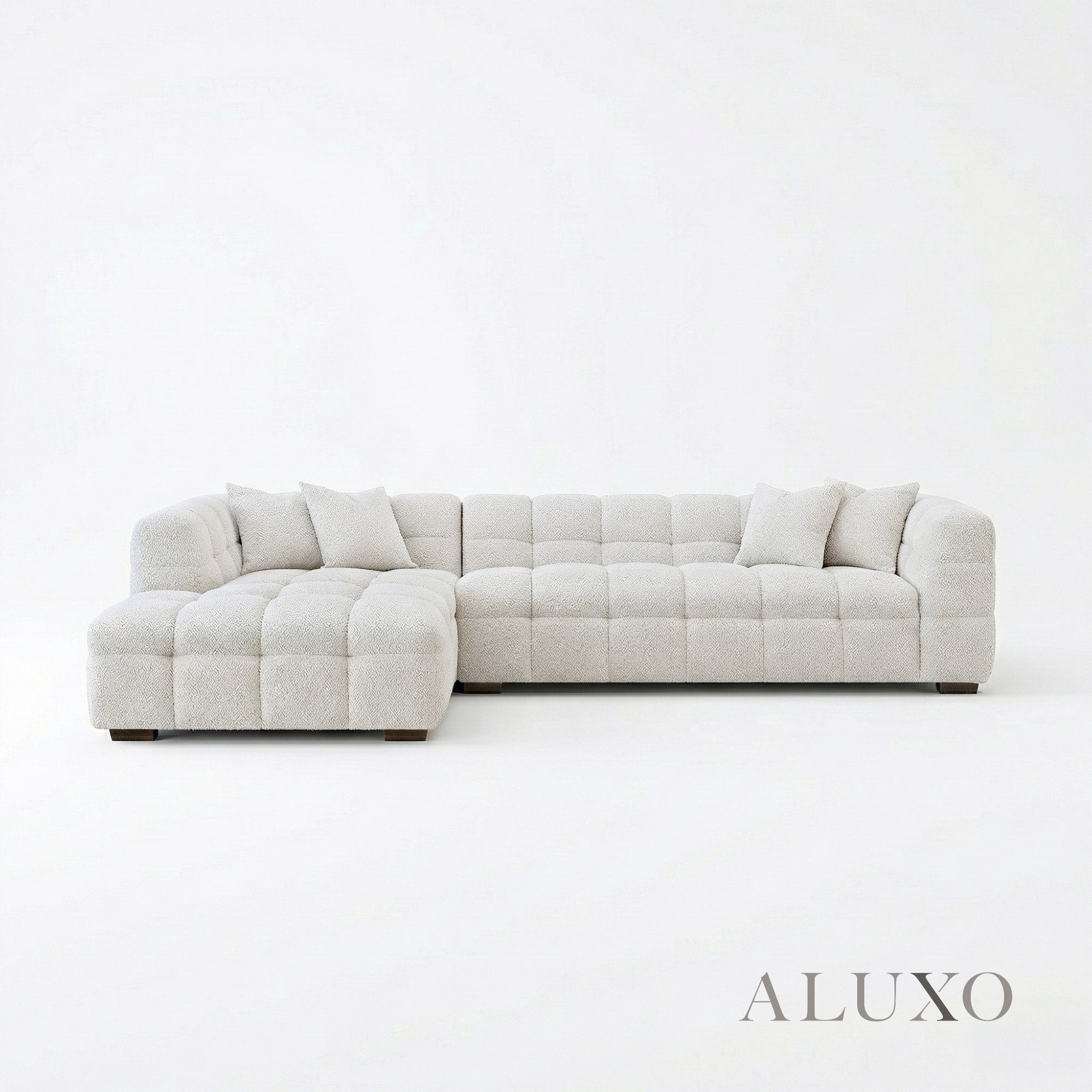 This left-hand configuration is meticulously proportioned to maximize seating while maintaining a light, airy presence. Built with a solid hardwood frame and high-resilience foam, it ensures both structural integrity and long-lasting comfort. Aluxo-Key Aluxo-KeyCopy