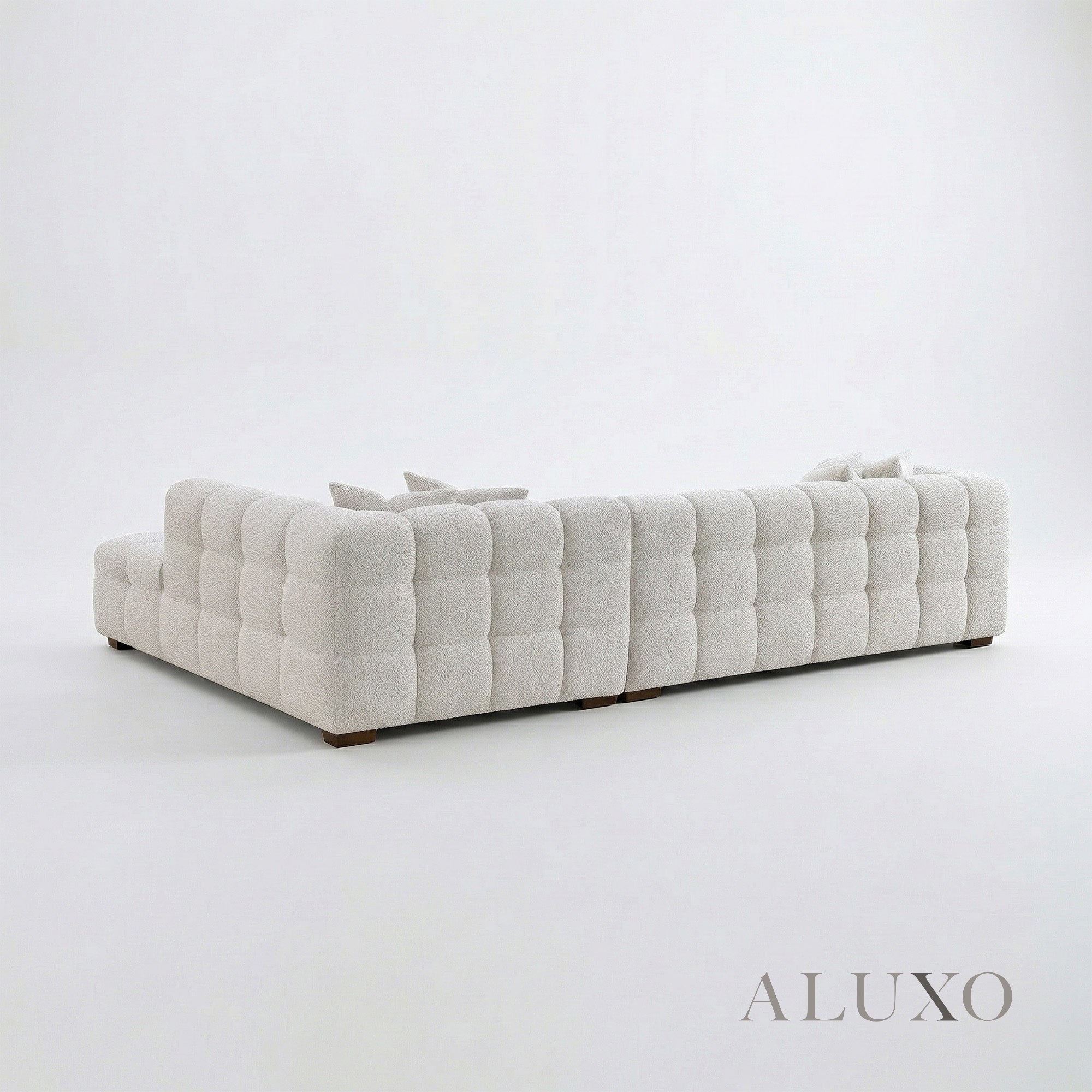 Safety and craftsmanship are at the core of the ALUXO® philosophy; this piece is fully UK fire-retardant certified. With a firmness level of 7/10, the seating offers the ideal balance between ergonomic support and luxurious comfort, all while resting on discreet 7cm wooden legs for an airy, floating aesthetic.