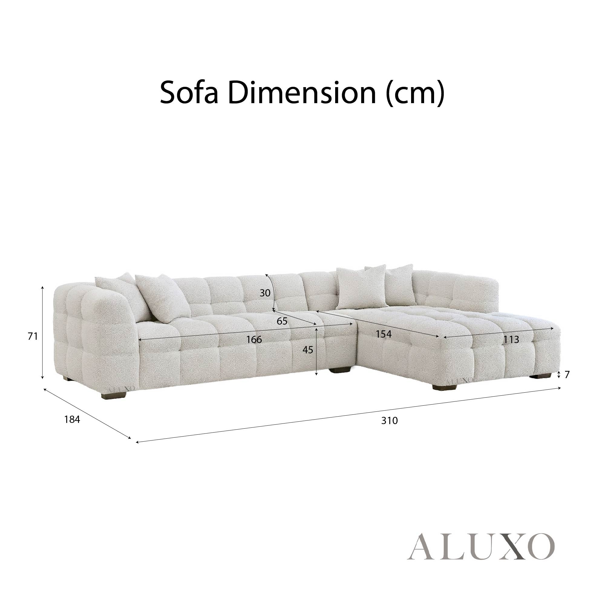 • Seat Cushion: L166 x D65 + L113 x D154 (cm) Aluxo-Dim Aluxo-DimCopy