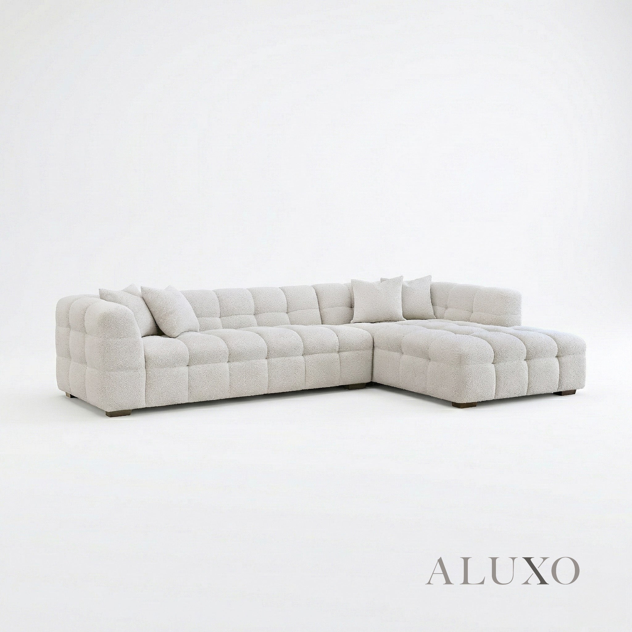Generously proportioned for relaxed family living and effortless entertaining, the right-hand configuration provides expansive seating while maintaining a light, balanced profile within the room. Crafted with a solid wood frame and layers of high-resilience foam, it delivers lasting support and comfort. Aluxo-Key Aluxo-KeyCopy