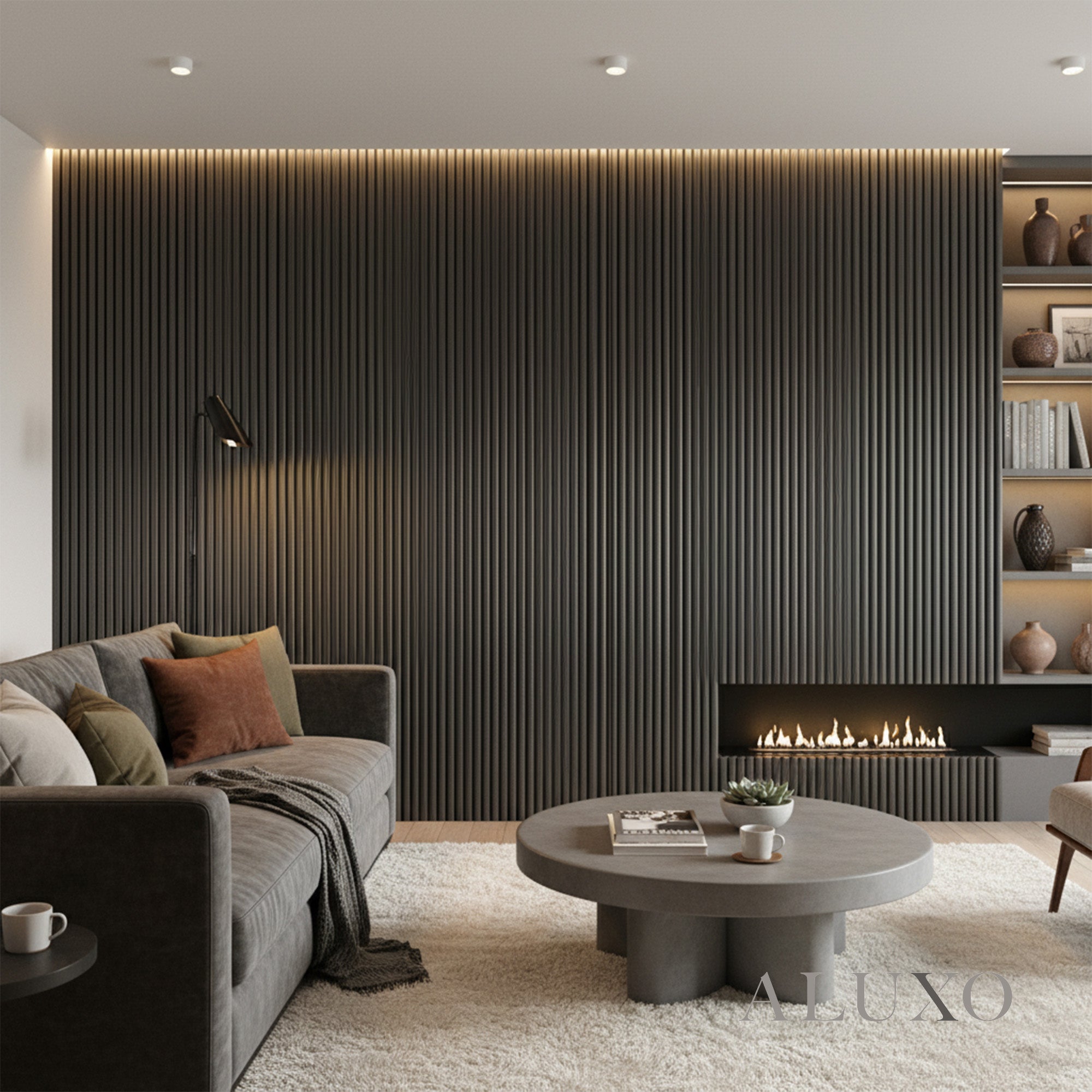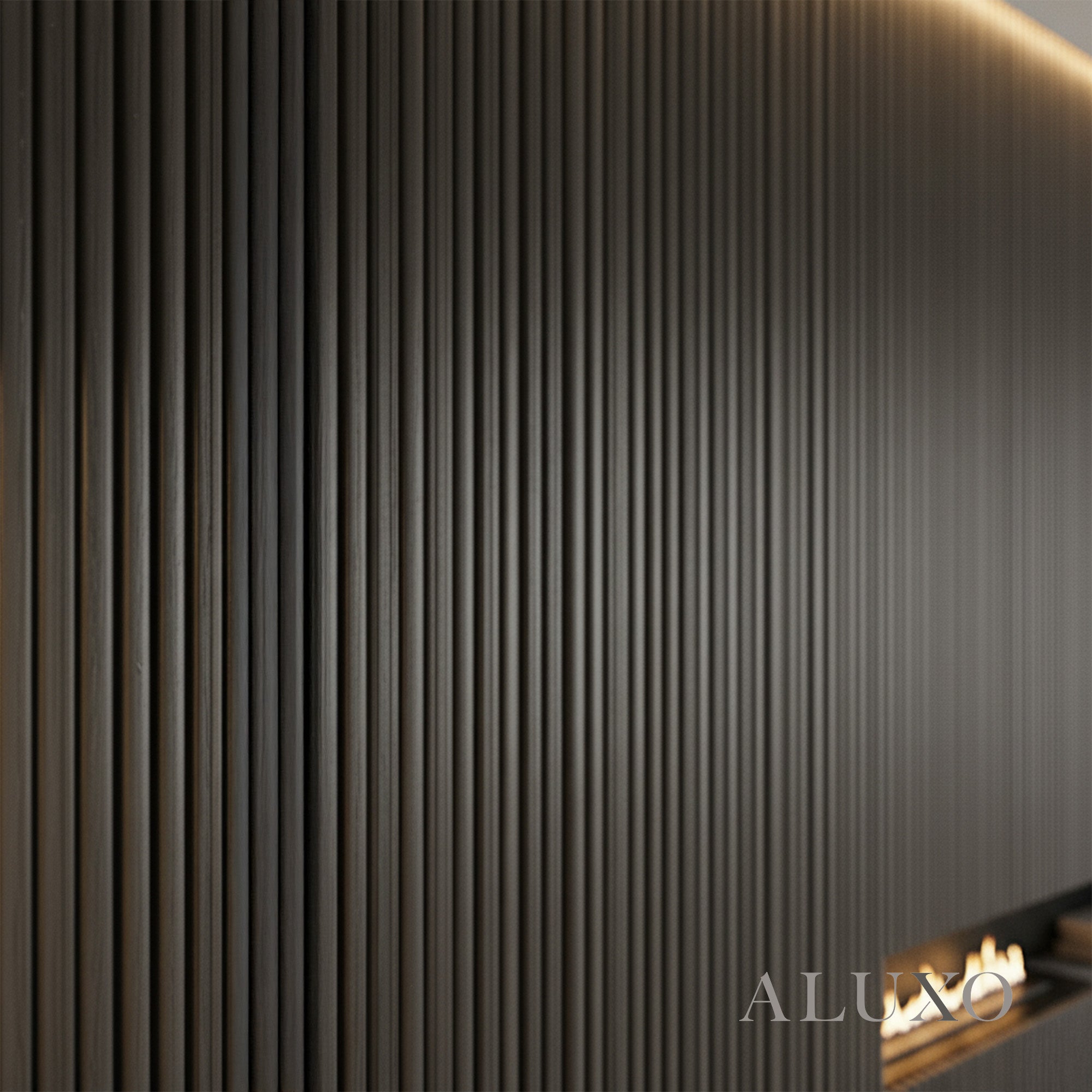 ALUXO® WPC 3D Fluted Wall Panels – Black Brushed provide a sophisticated half-round wood-effect design, perfect for modern residential and commercial spaces.