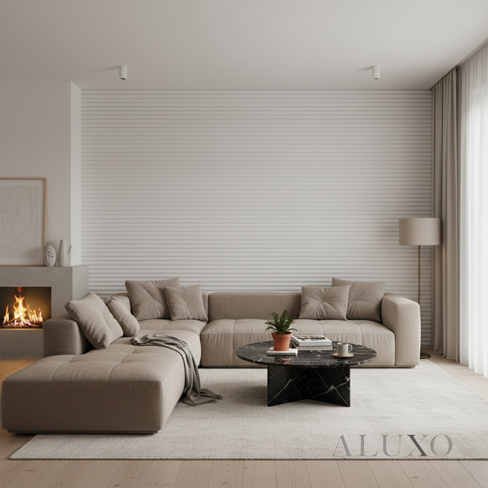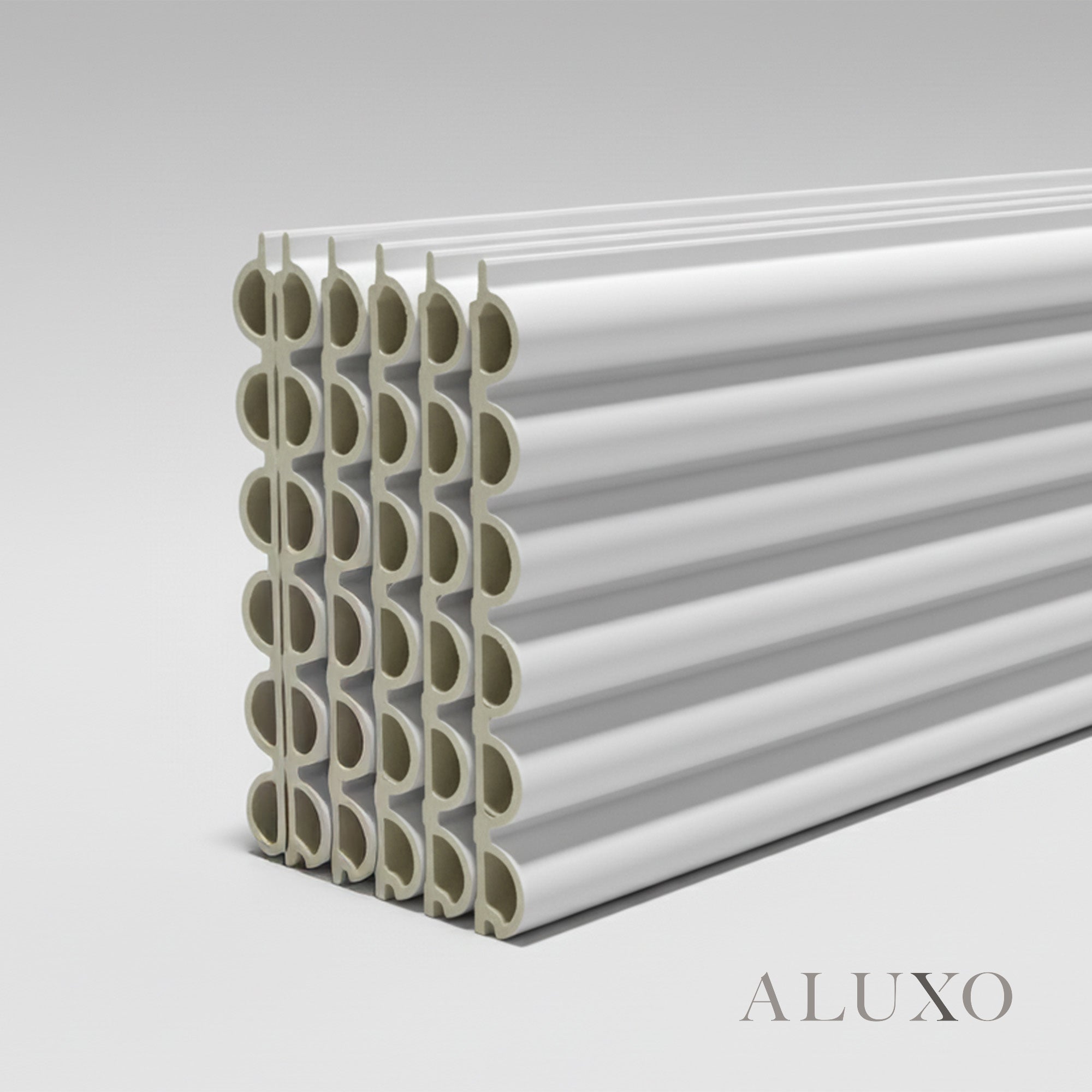 ALUXO® WPC 3D Fluted Wall Panels – Matte White provide a contemporary half-round wood-effect design with a clean white finish, perfect for residential and commercial interiors.