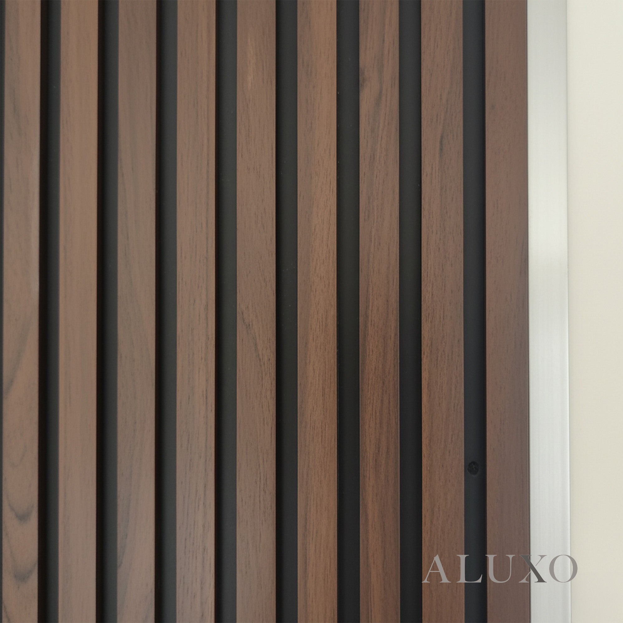 Aluxo-Track-CopyMade from premium wood plastic composite (WPC), these panels are durable, low-maintenance, and provide a realistic dark oak timber finish.