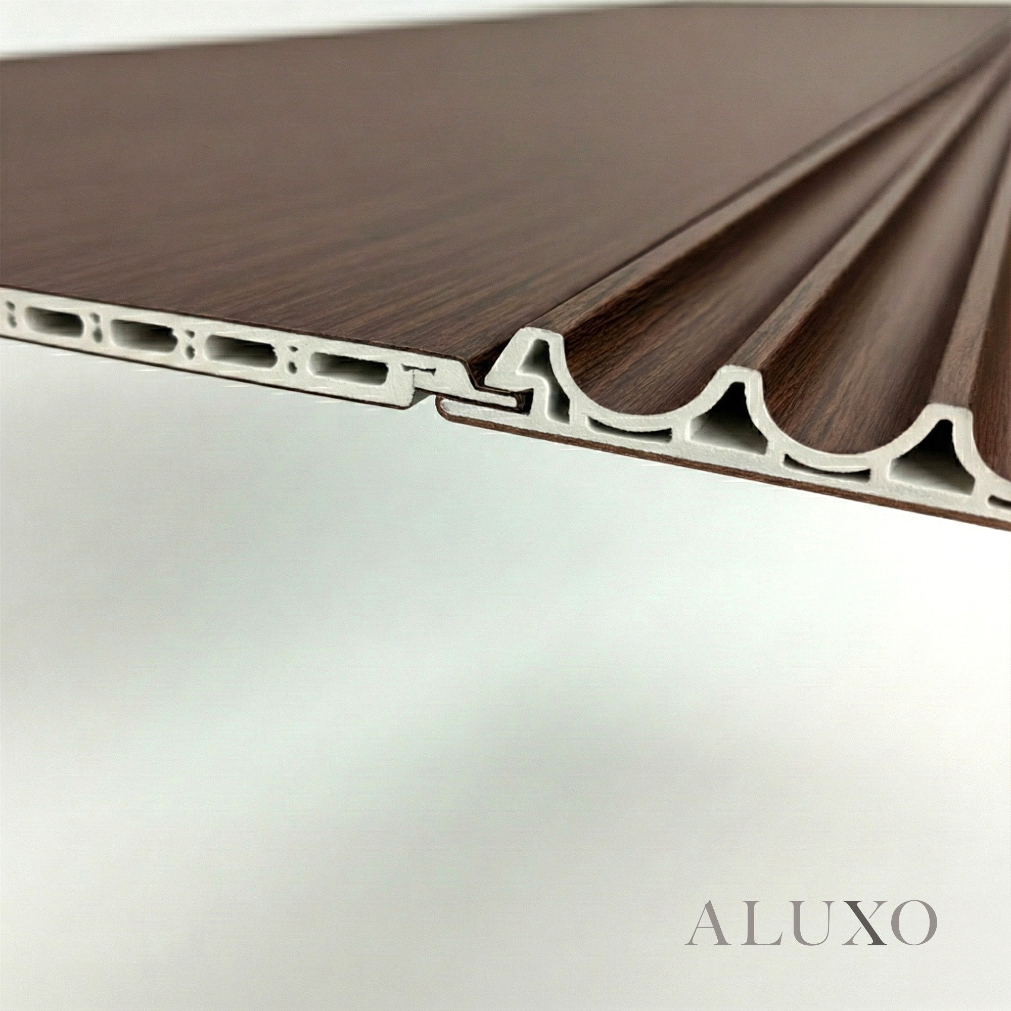 Aluxo-Combo-WalnutCrafted from eco-friendly wood-plastic composite, these panels replicate the natural grain of walnut while offering durability, low maintenance, and seamless installation. Perfect for both residential and commercial interiors.