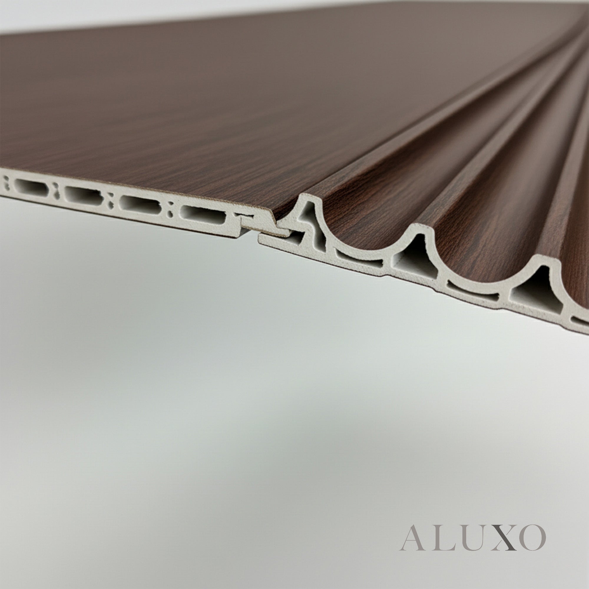 Aluxo-Combo-WalnutCrafted from eco-friendly wood-plastic composite, these panels replicate the natural grain of walnut while offering durability, low maintenance, and seamless installation. Perfect for both residential and commercial interiors.