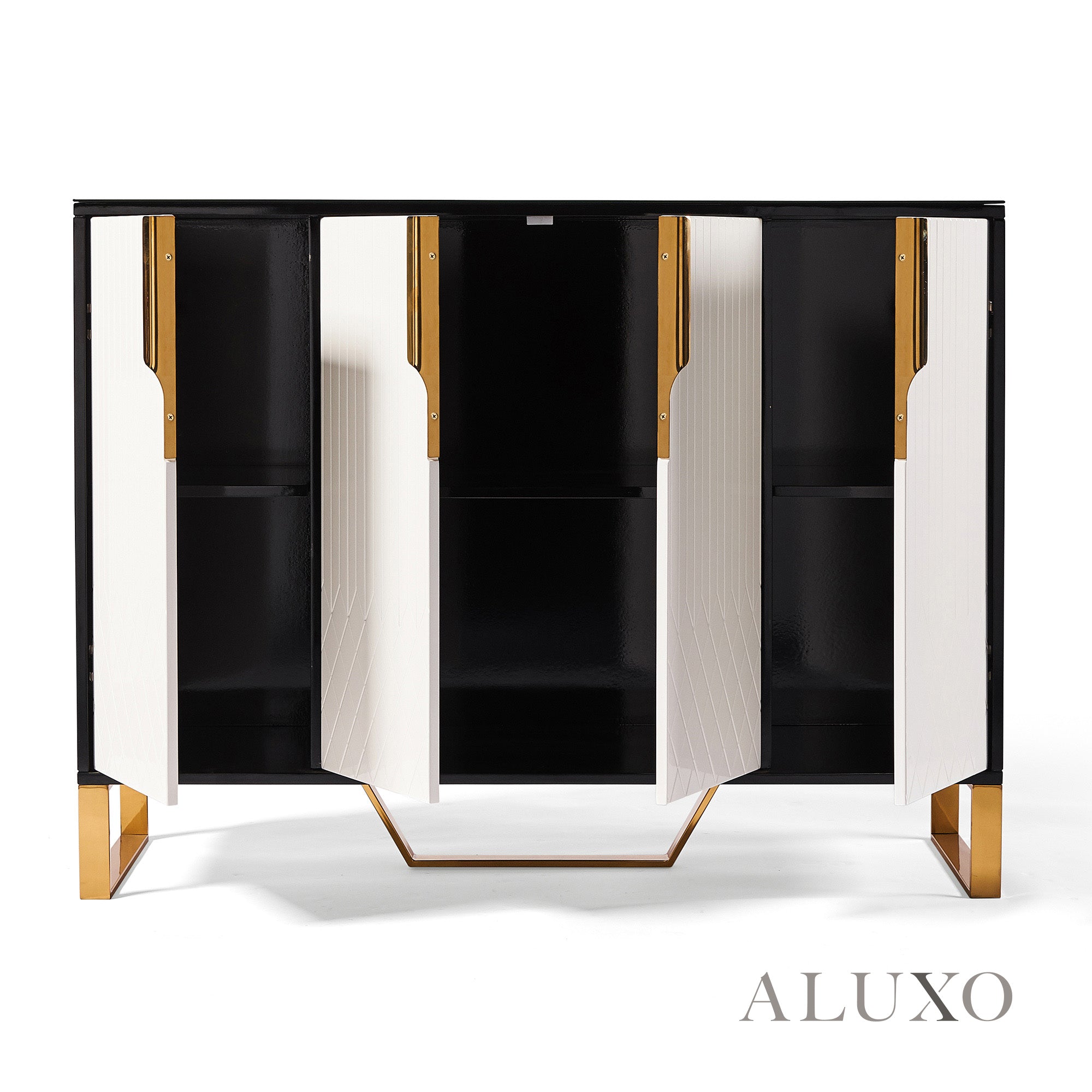 Featuring four soft-closing doors, this cabinet provides generous concealed storage for a clutter-free home. Delivered fully assembled in a protective wooden crate, making setup quick and effortless. Aluxo-Dim:AlvarSideboardBlackGold