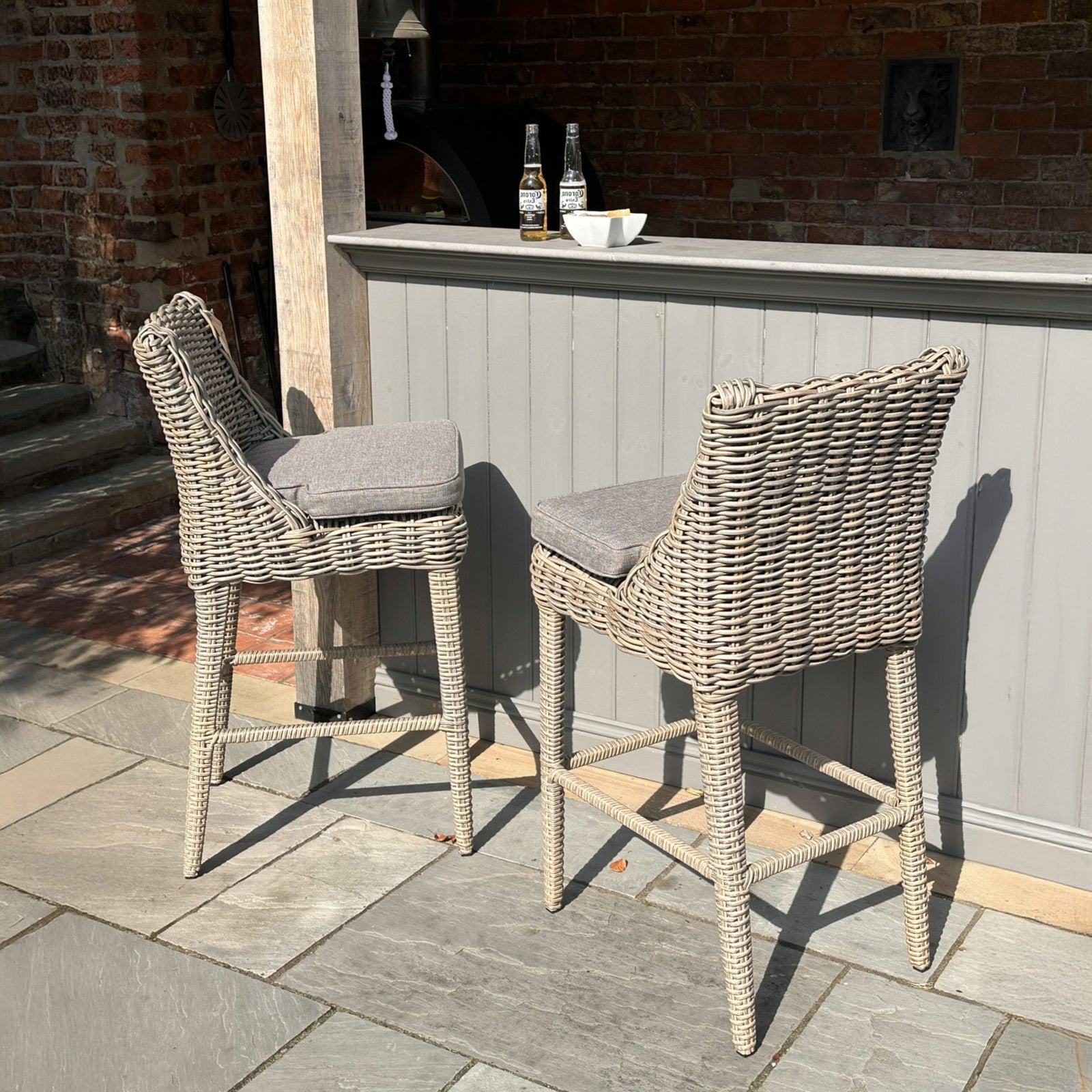 Ideal for pairing with matching outdoor bar tables or as stylish standalone seating in garden lounges, terraces, or patio bars.