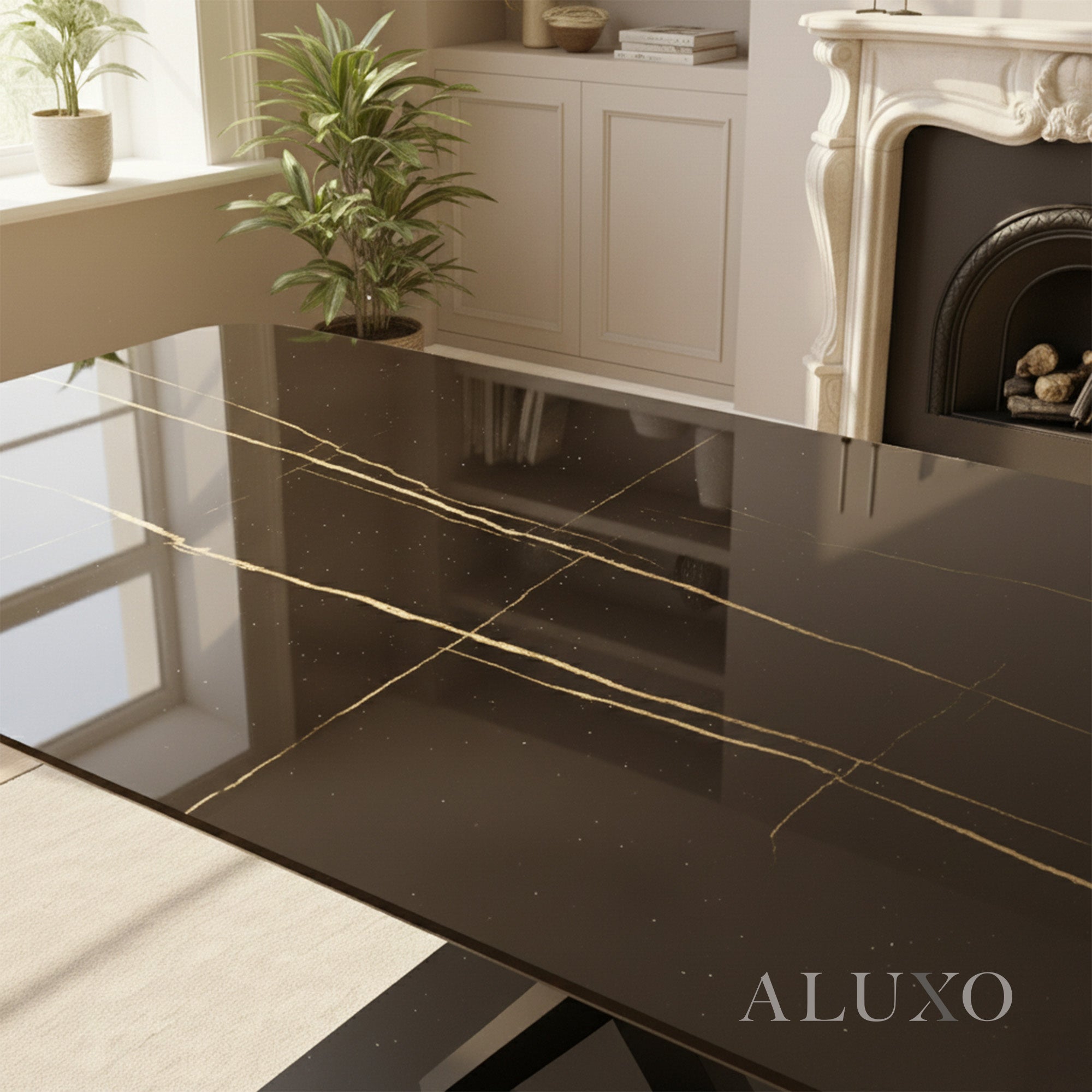 The 10mm sintered stone tabletop delivers an ultra-chic marble-inspired aesthetic while offering exceptional resistance against scratches, heat, and stains — making it both stylish and practical for everyday living. ARV-Key:UK-STONE