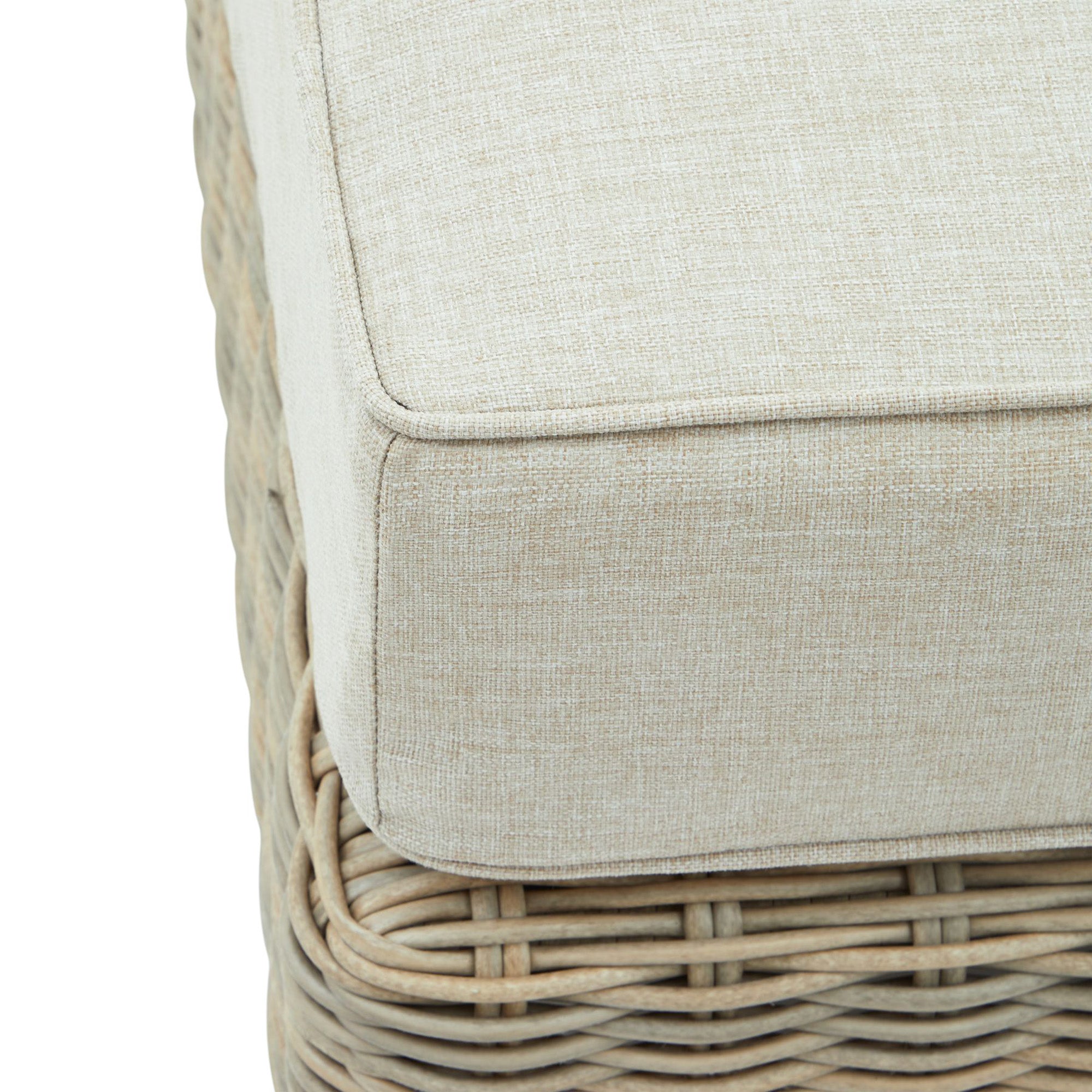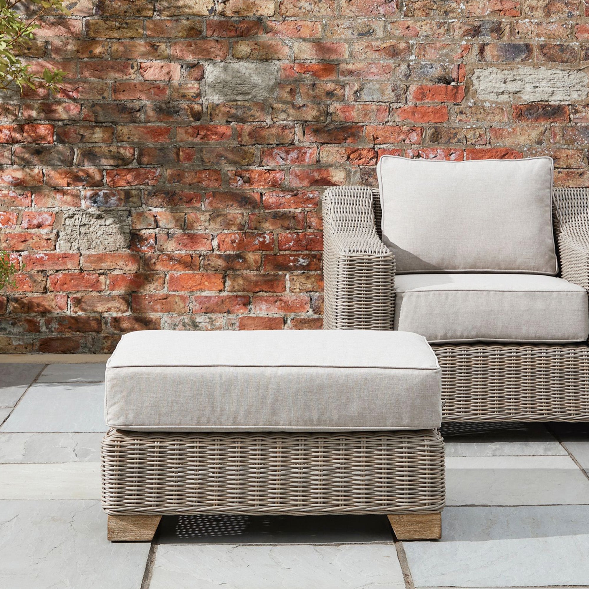 Add a touch of refined relaxation to your outdoor setup with this elegant wicker footstool, designed to blend beautifully with both contemporary and classic outdoor collections. The handwoven 5mm half-round HDPE wicker mimics the texture of natural rattan, while delivering outstanding resilience against sun and rain.