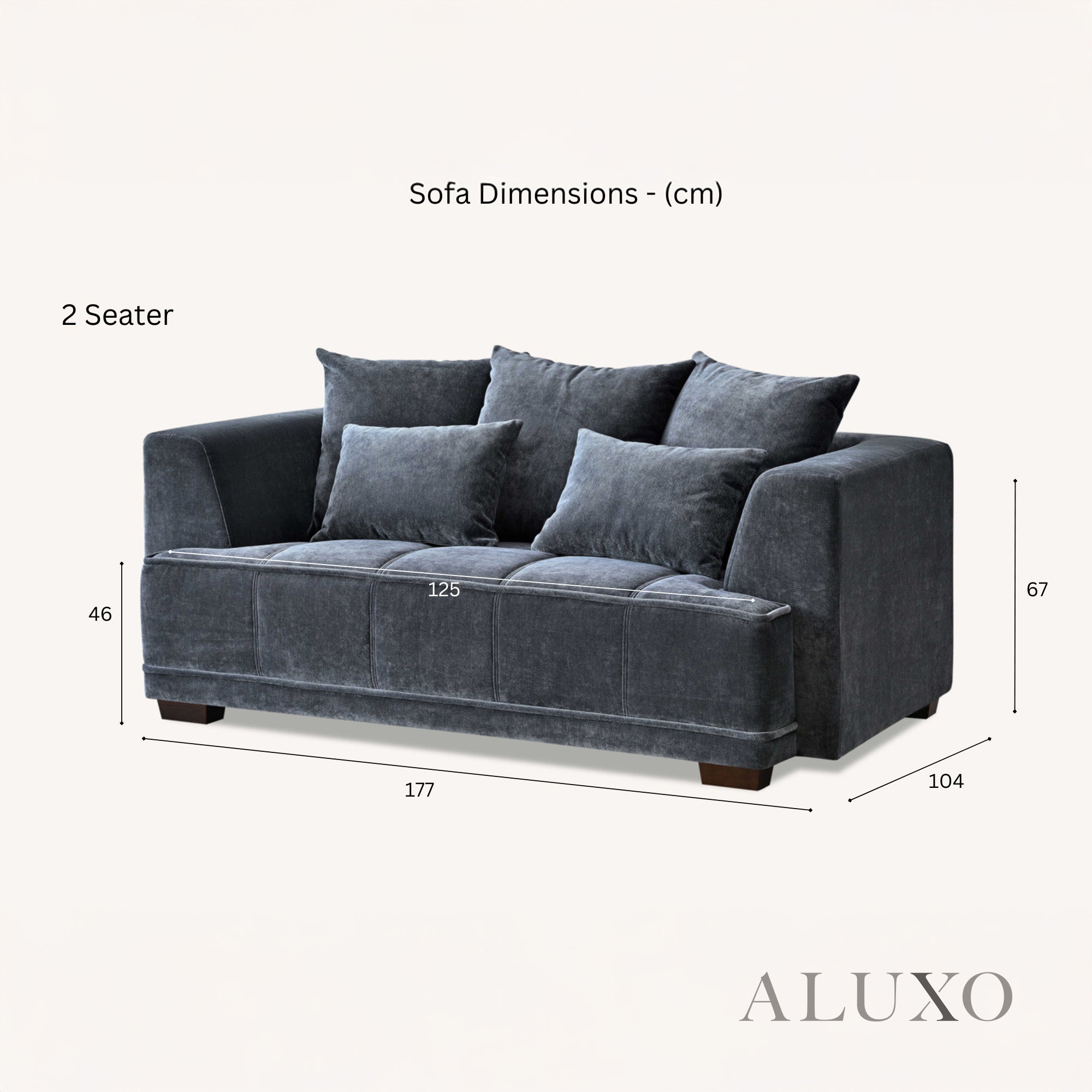 2-Seater: 177cm (L) x 104cm (D) x 67cm (H)