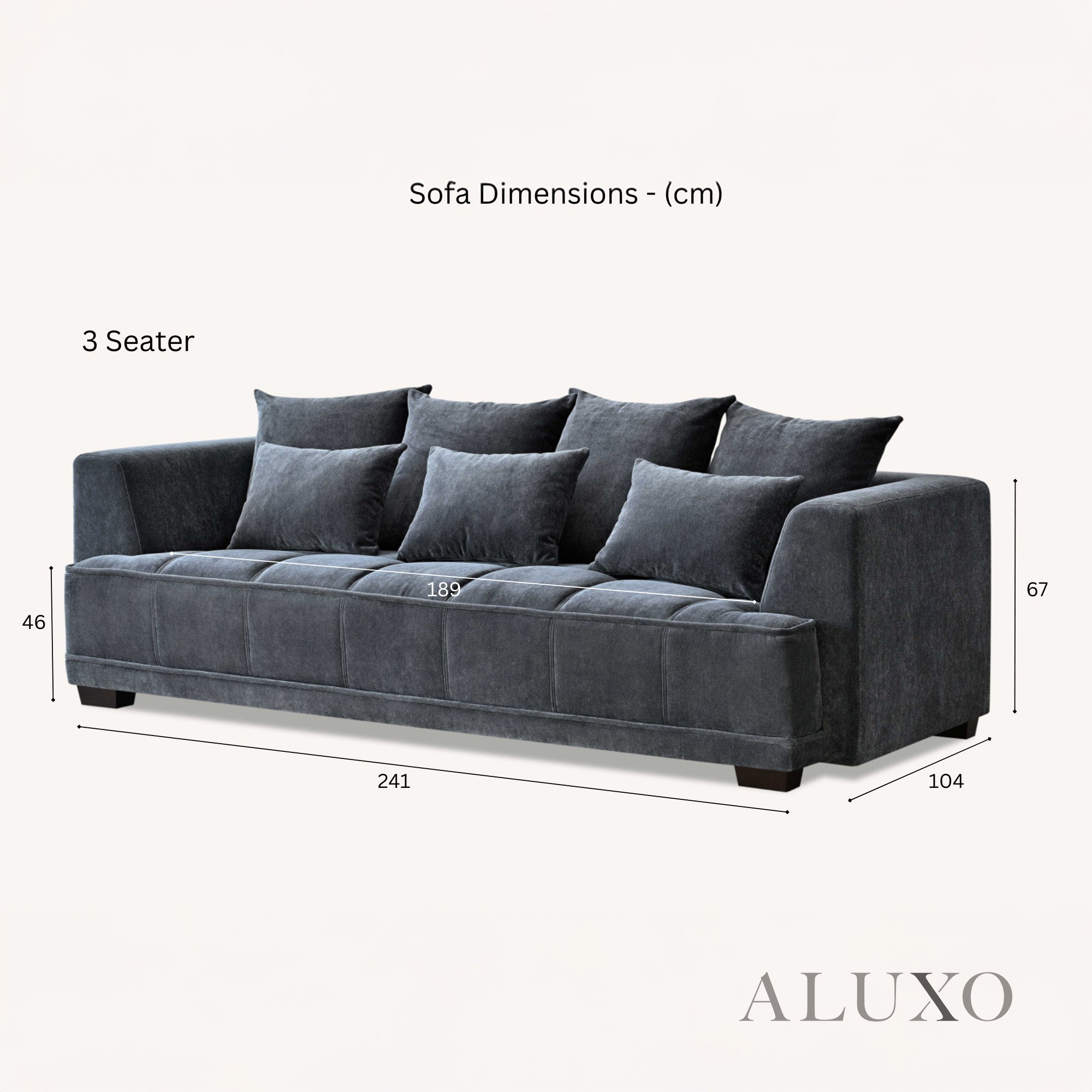 3-Seater: 241cm (L) x 104cm (D) x 67cm (H)