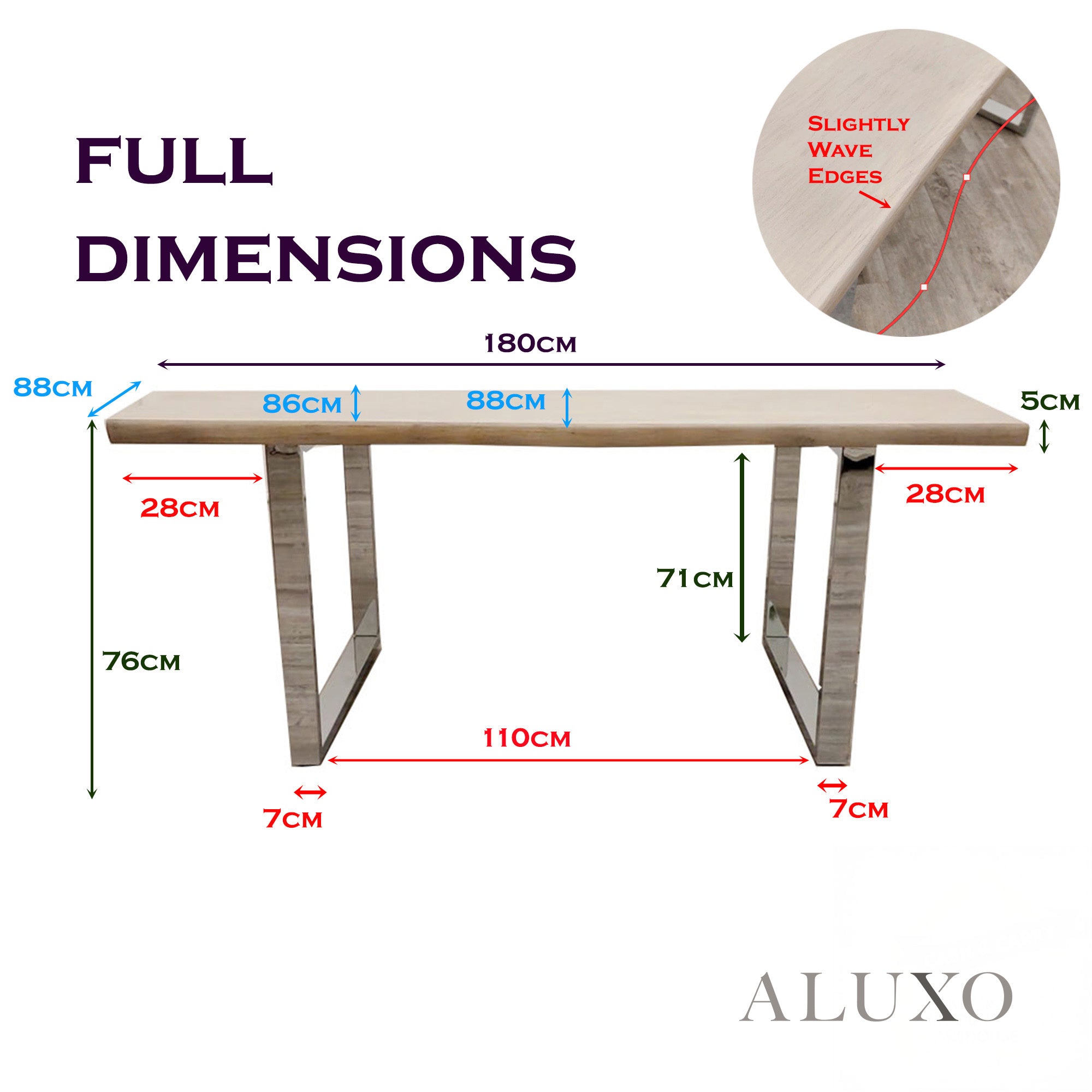 Please allow for up to 3% variation in measurements.Aluxo-Dim