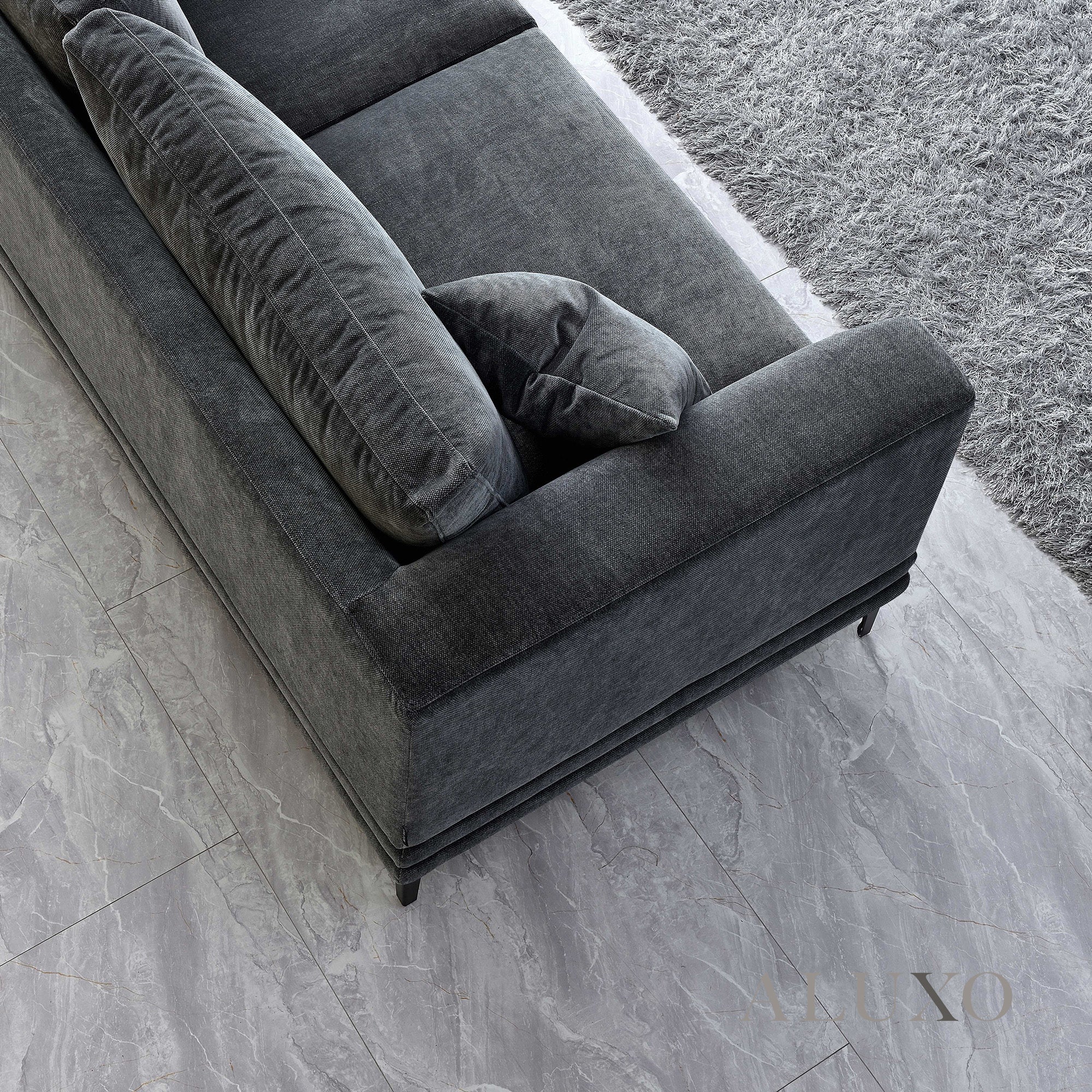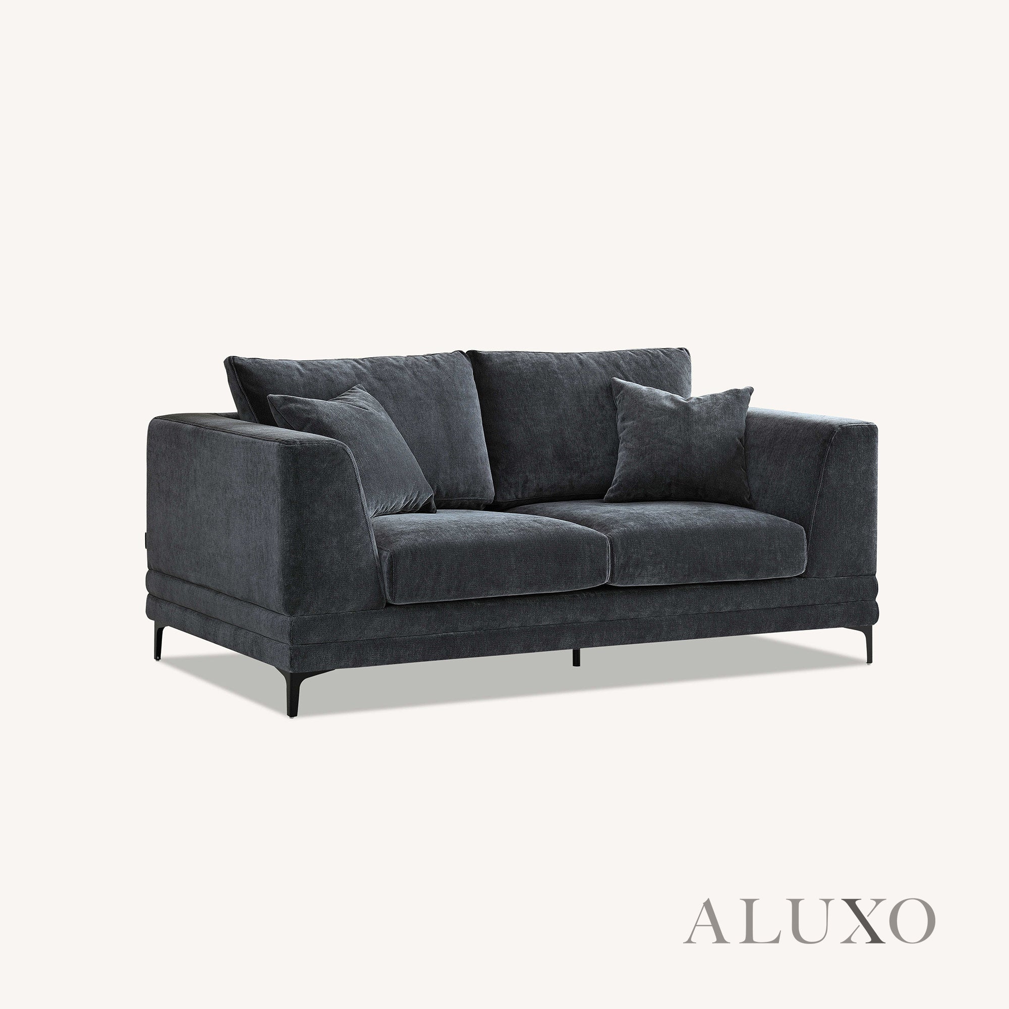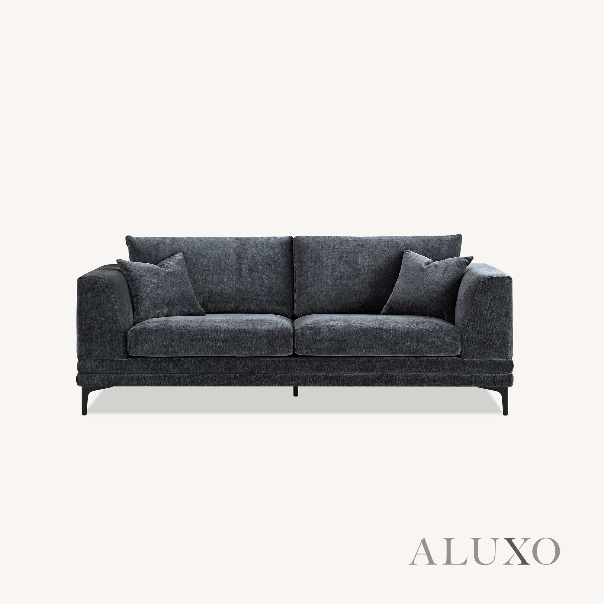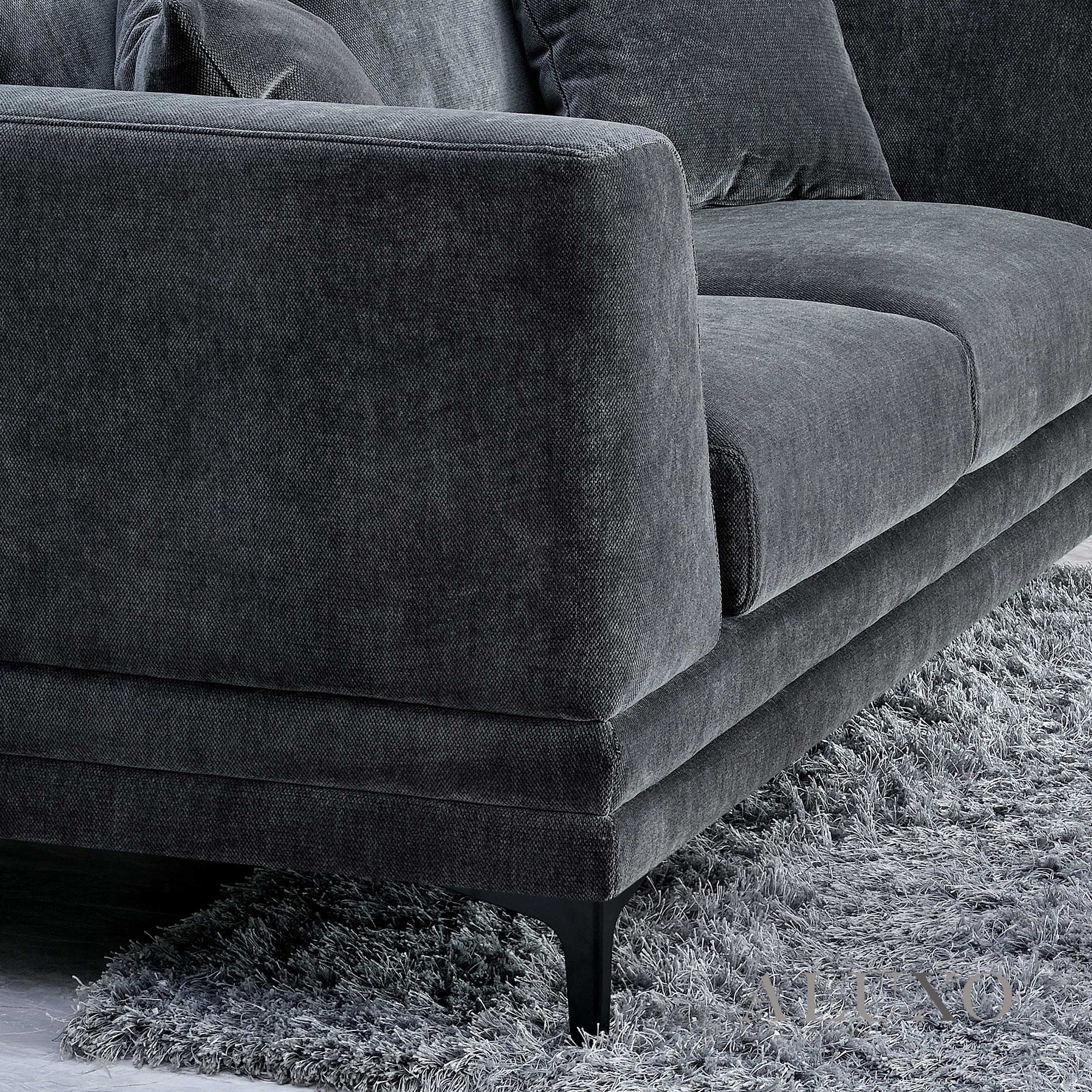 ALUXO® Lenox 3 & 2 Seater Sofa – Steel Grey Velvet | Mid-Century Modern Comfort