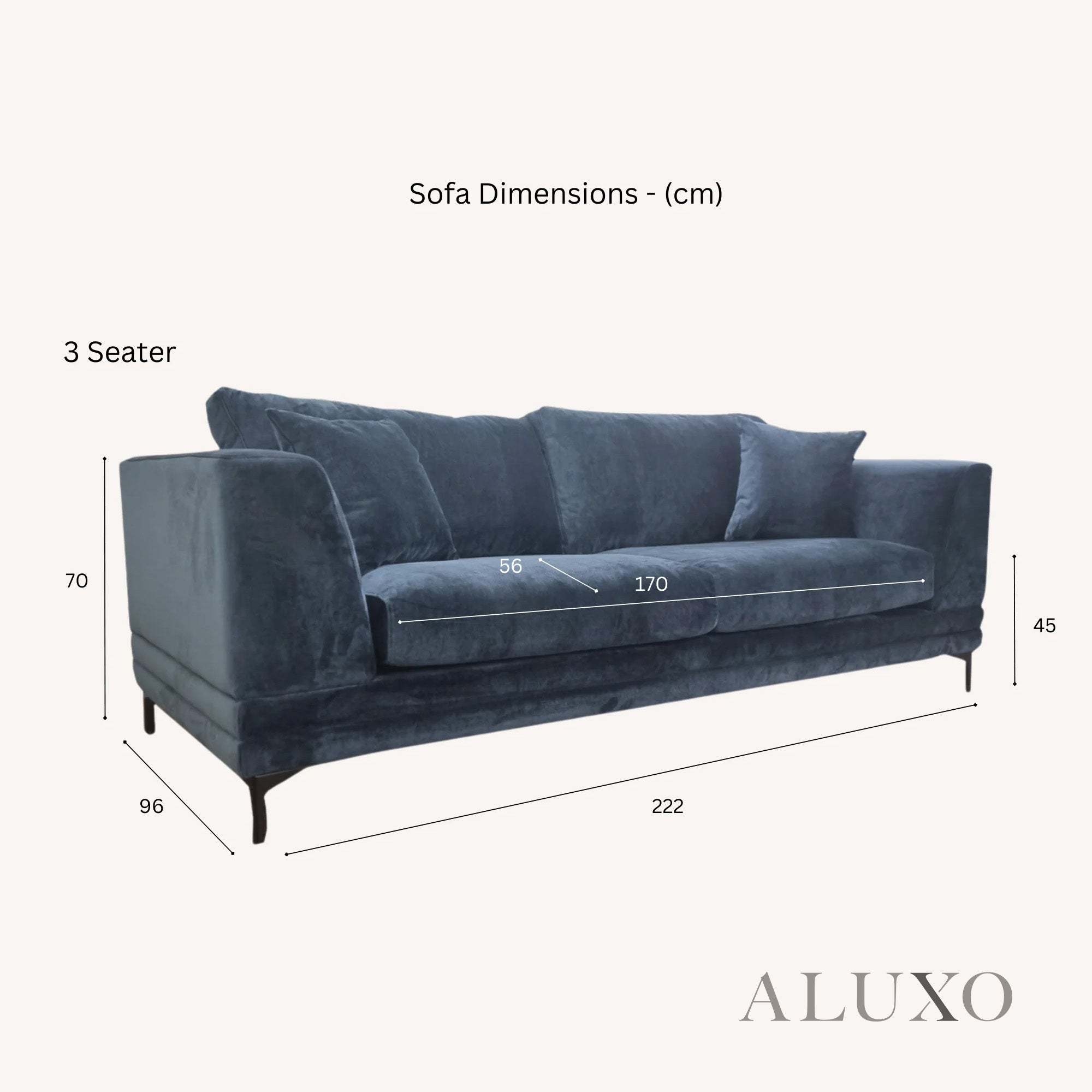 • Seat: 170cm (L) x 56cm (D)