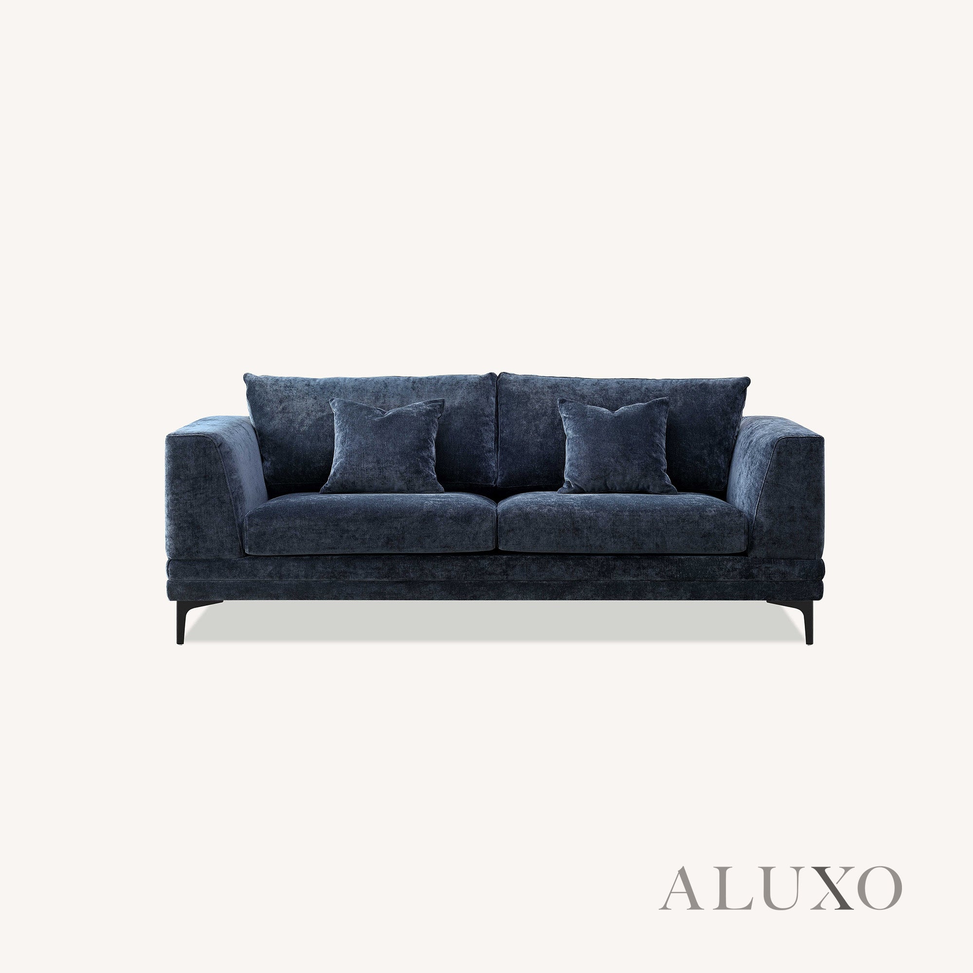 The ALUXO® Lenox Sofa Range proudly showcases mid-century modern design with its minimal silhouette and architectural structure. Elevated on a streamlined wooden plinth, its form is accentuated by squared edges and clean lines that effortlessly complement contemporary interiors. Aluxo-Track Aluxo-TrackCopy