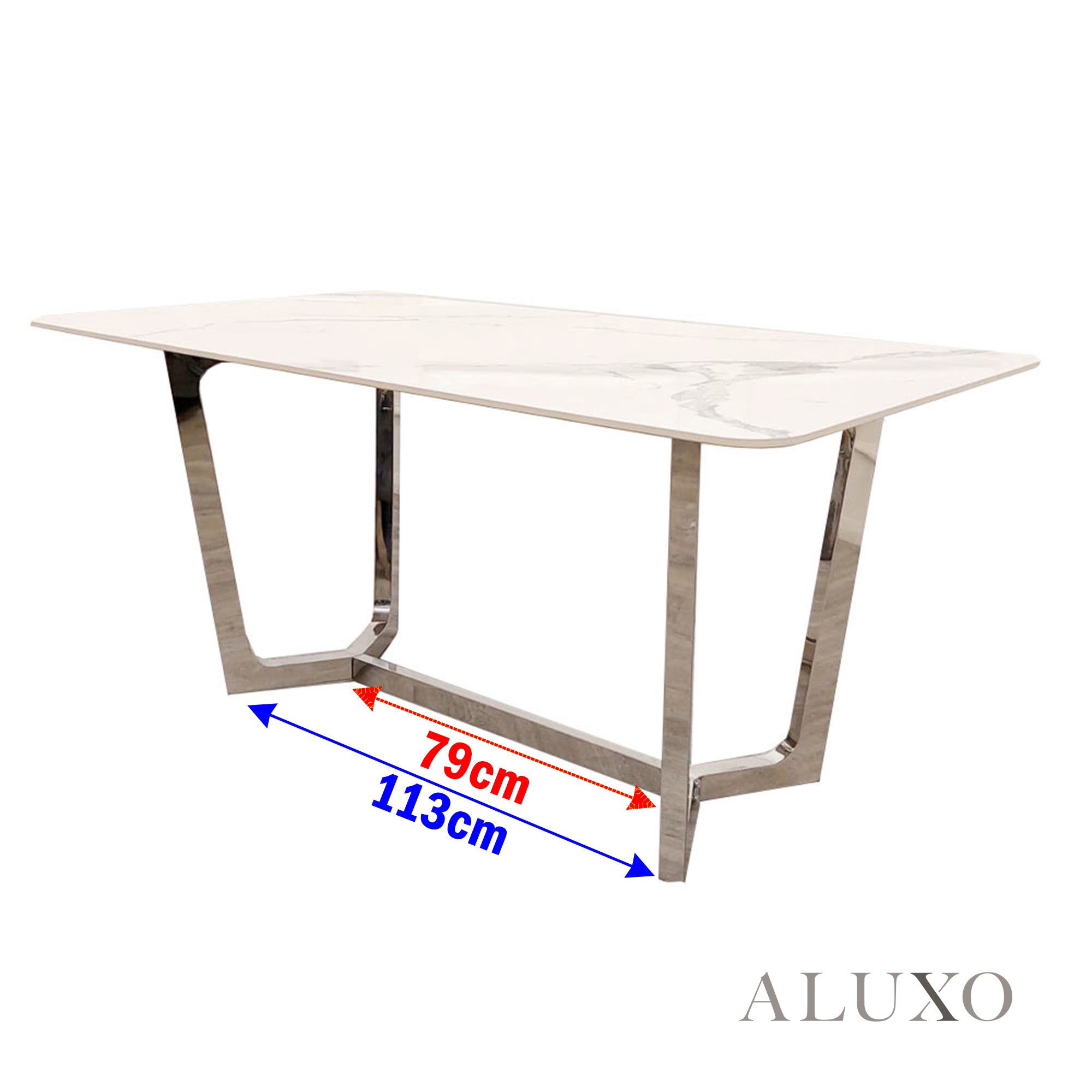 Elevate your dining space with the Loki 1.6m Rectangular Dining Set, featuring a 10mm white sintered stone tabletop paired with sleek chrome legs and complemented by Olivia velvet dining chairs. Perfect for small to medium families, this set blends modern luxury with timeless elegance.