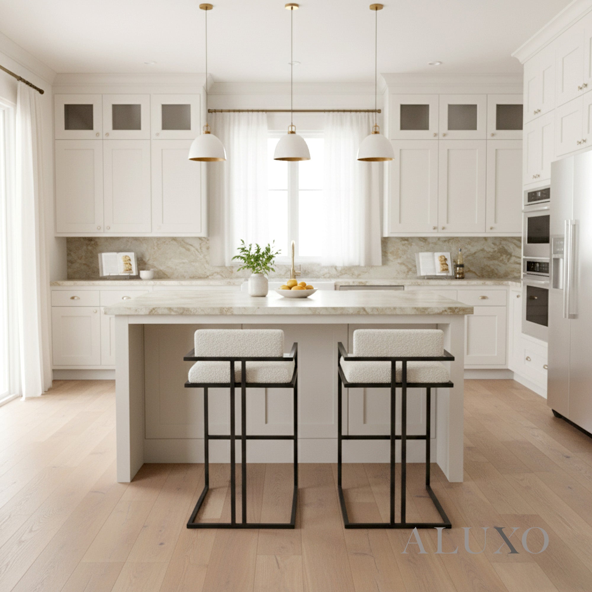 The Nils Bouclé Bar Stool offers the perfect combination of modern aesthetics, premium comfort, and sleek design. Upholstered in a soft bouclé fabric, this counter-height stool brings a warm and contemporary feel to any kitchen or bar area.Aluxo-Track Aluxo-TrackCopy