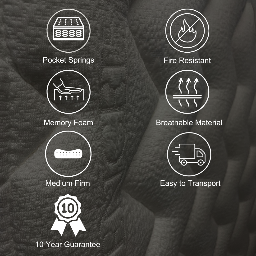 The Oasis is rated medium firm, striking the perfect balance between comfort and support – especially suited for back and side sleepers. At 25cm thick, it delivers hotel-quality performance, ensuring your spine stays aligned while the top layer cushions pressure points for ultimate comfort.