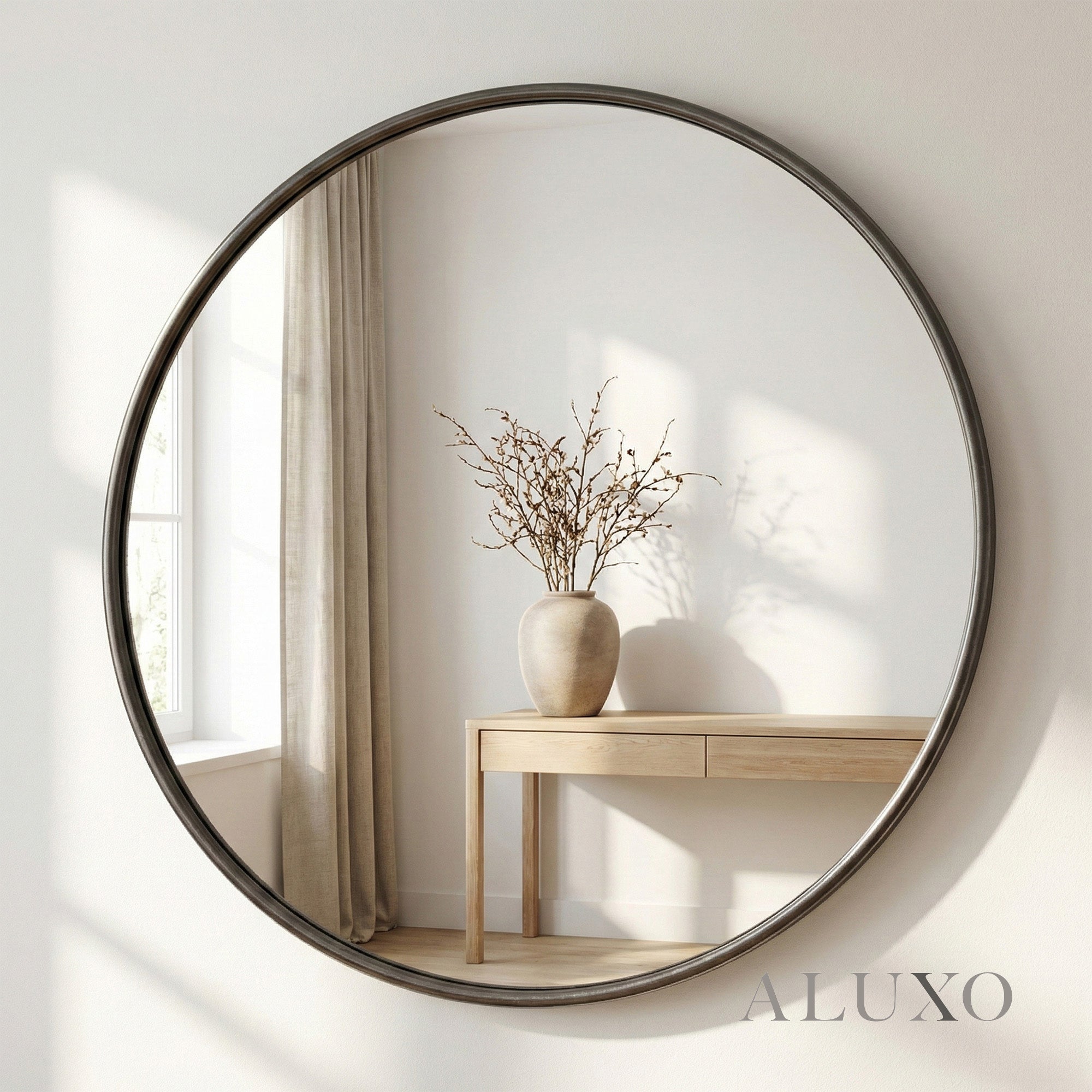 Ideally suited for expansive wall spaces that require a bold feature, the Orel reflects light generously to open up the room. Its deep 7cm profile creates a shadow gap effect, adding architectural depth. Whether placed above a console in a large hallway or as the centrepiece of a living room, it instantly elevates the space with its bright, metallic allure. Aluxo-Key Aluxo-KeyCopy