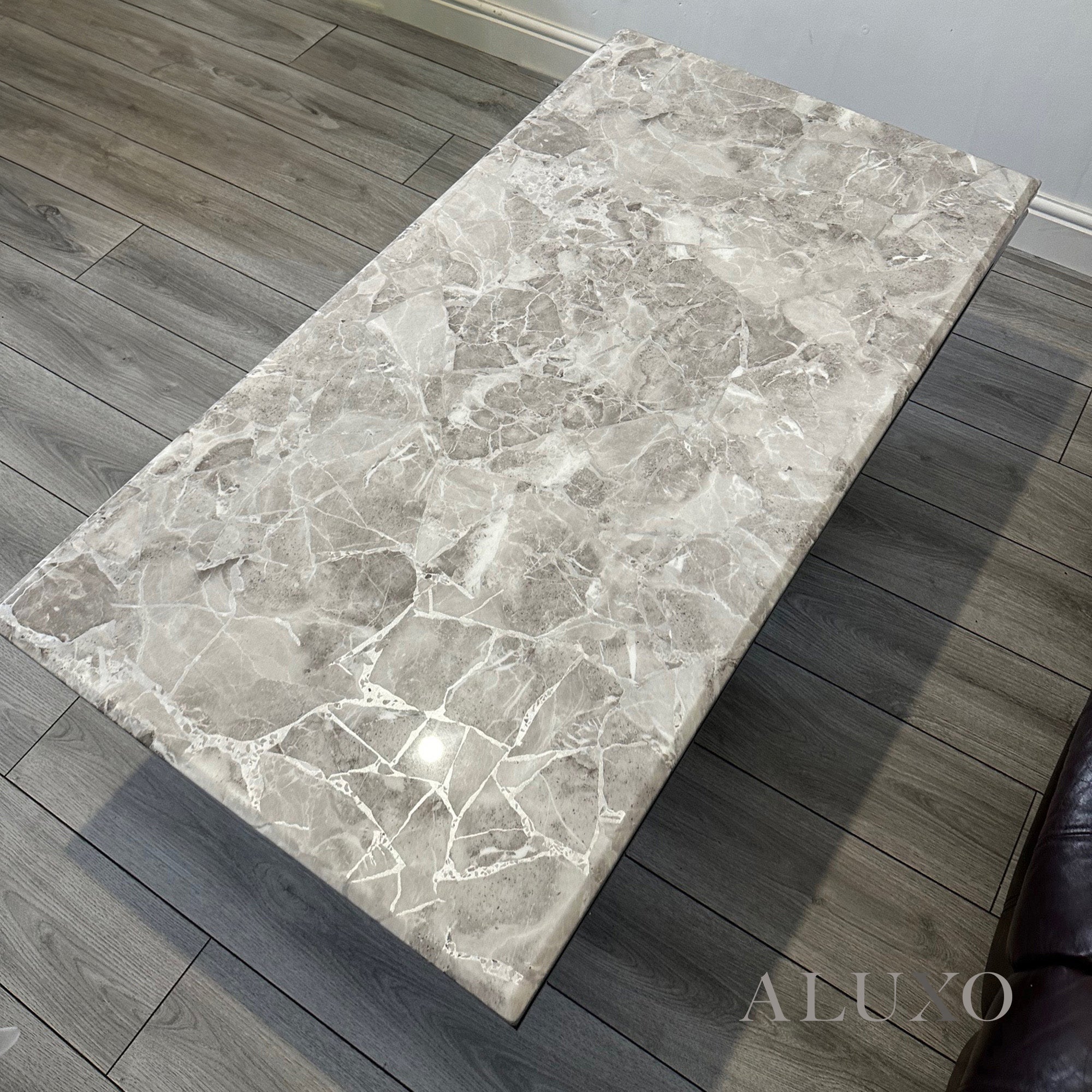 The unique natural marble patterns ensure that each piece is truly one-of-a-kind, while the smooth surface makes maintenance effortless and cleaning simple. Aluxo-Dim:Aksel130Grey