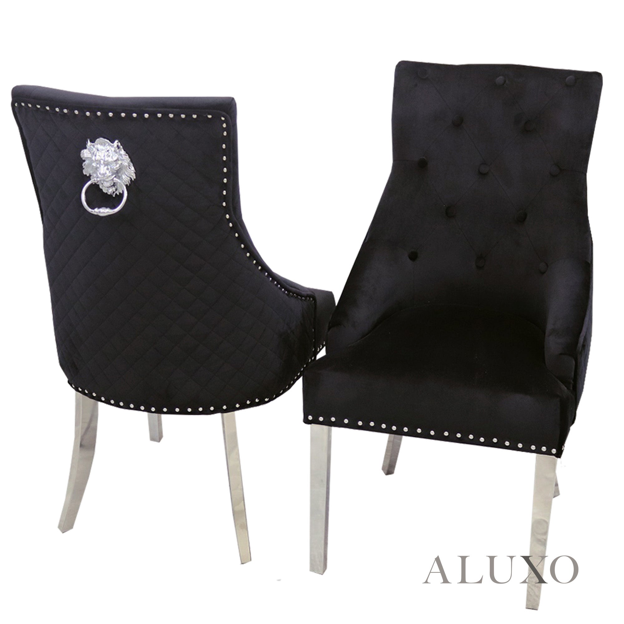 Paired with Bentley black velvet dining chairs, featuring quilted stitching, stud detailing, and a chrome lion knocker back, this set perfectly balances style and functionality while being UK fire-resistant tested. ORV-180-SET-MULTI-UK03