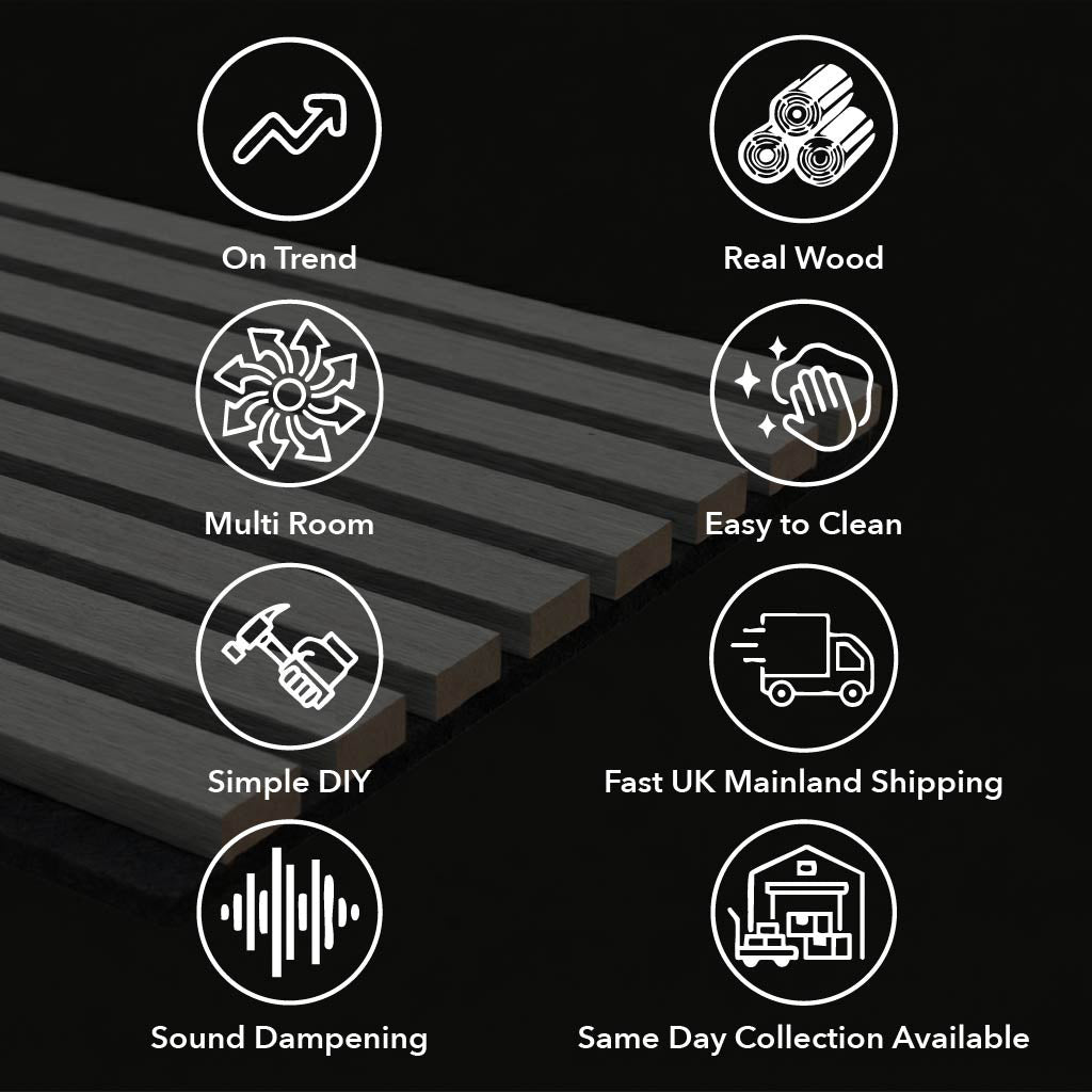 Panelux™ Pro Grey Coloured Acoustic Wood Wall Panel | 3-Sided Wrap 240cm x 32cm (Set of 2)