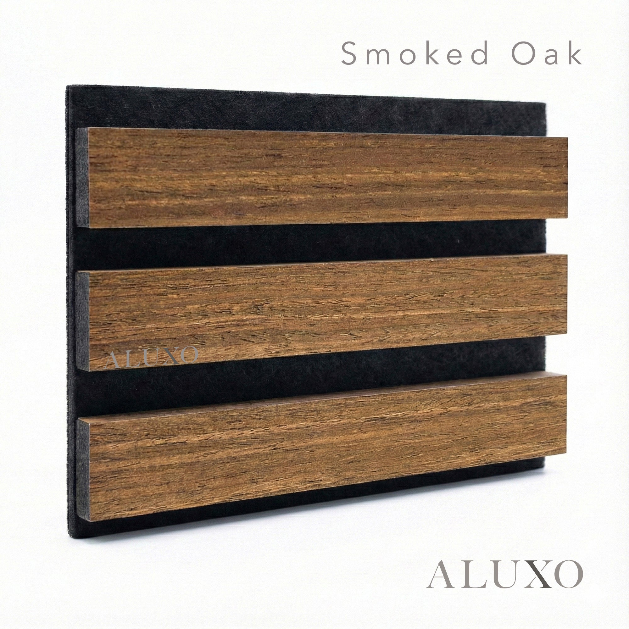 Combining the depth of Smoked Oak with advanced acoustic performance, the ALUXO Acoustic Slatted Wall Panel introduces a refined architectural statement to contemporary interiors. Now upgraded with Premium Quality three-sided real wood veneer, each panel delivers exceptional visual richness from every angle.Aluxo-Track Aluxo-TrackCopy
