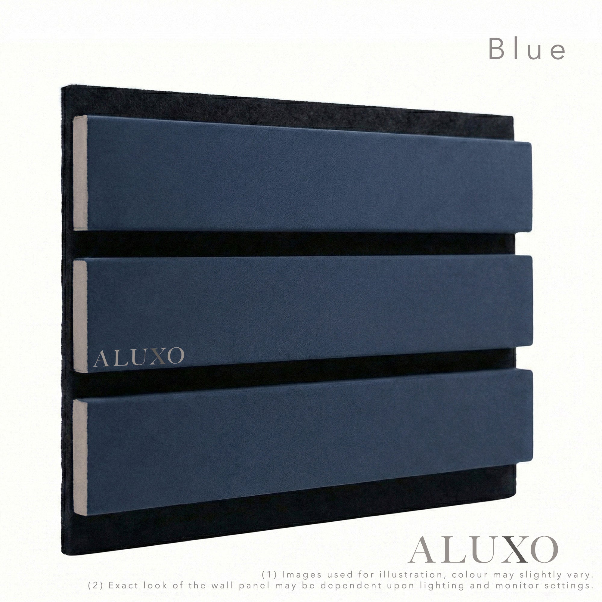 The Blue Coloured Wide Slat Acoustic Panel represents a premium alternative for those seeking a more substantial, architectural look. Featuring an upgraded 40mm wide slat and a crisp 10mm gap, this modern aesthetic delivers a bolder linear texture than standard versions, ensuring a clean and continuous blue finish from every angle with its stunning 3-sided wrap-around edge. Aluxo-Track Aluxo-TrackCopy