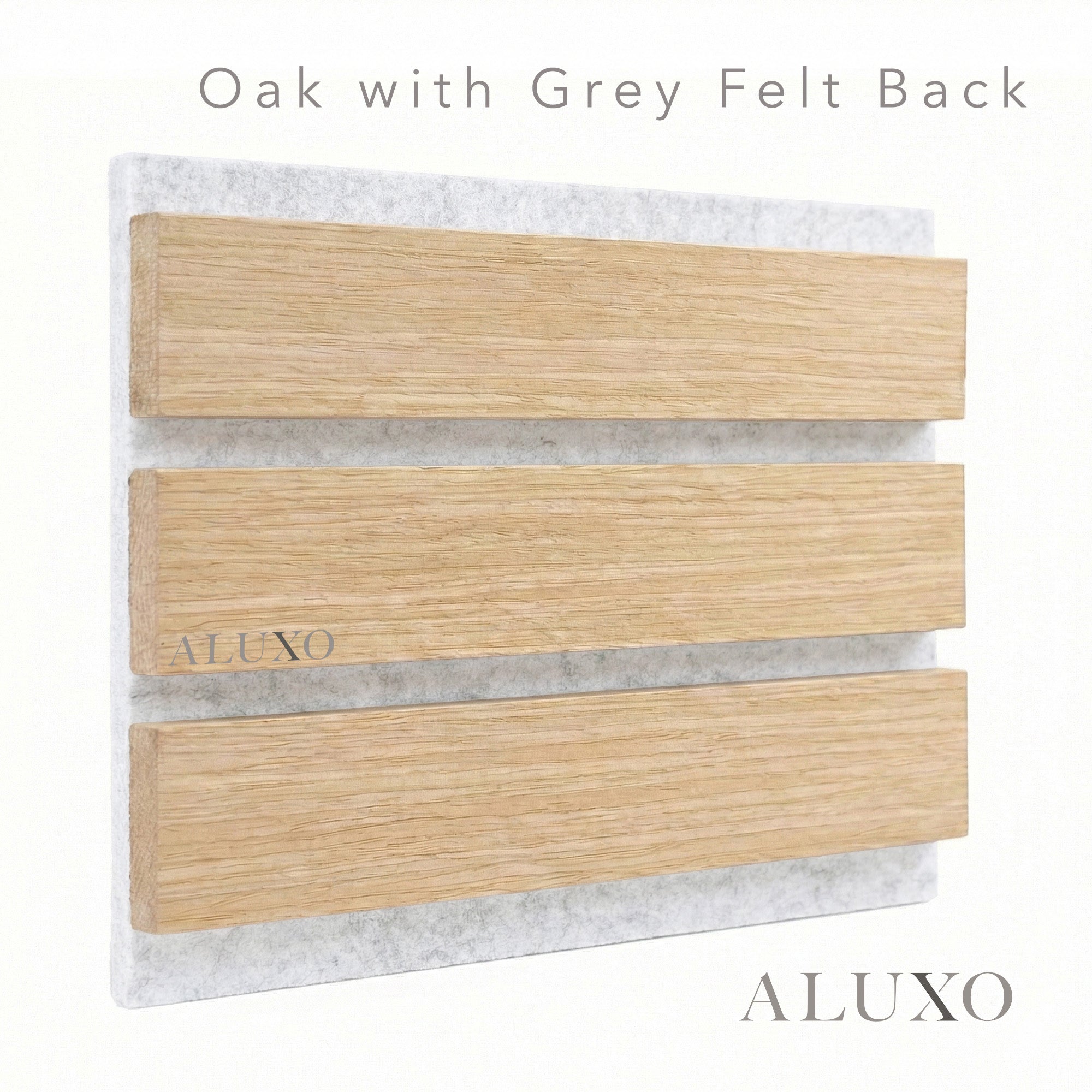 Engineered for effortless installation, this WIDE SLAT edition helps conceal wall imperfections with ease. The moisture-resistant grey felt and premium oak slats require no oiling—simply wipe clean to maintain its sophisticated, designer appearance. Aluxo-Dim Aluxo-DimCopy