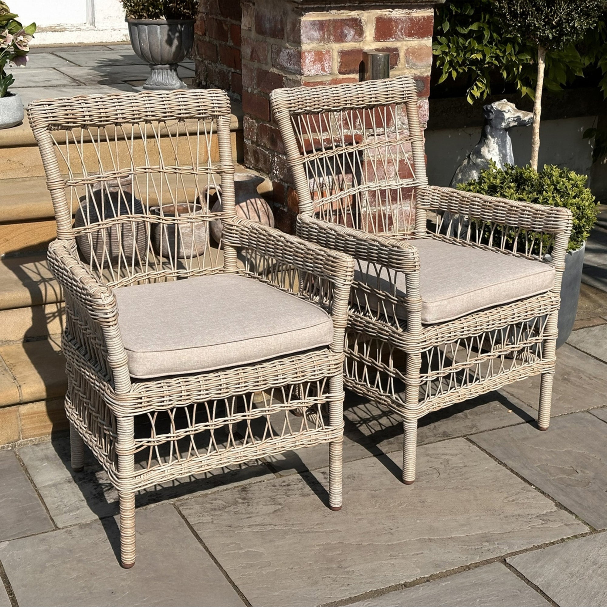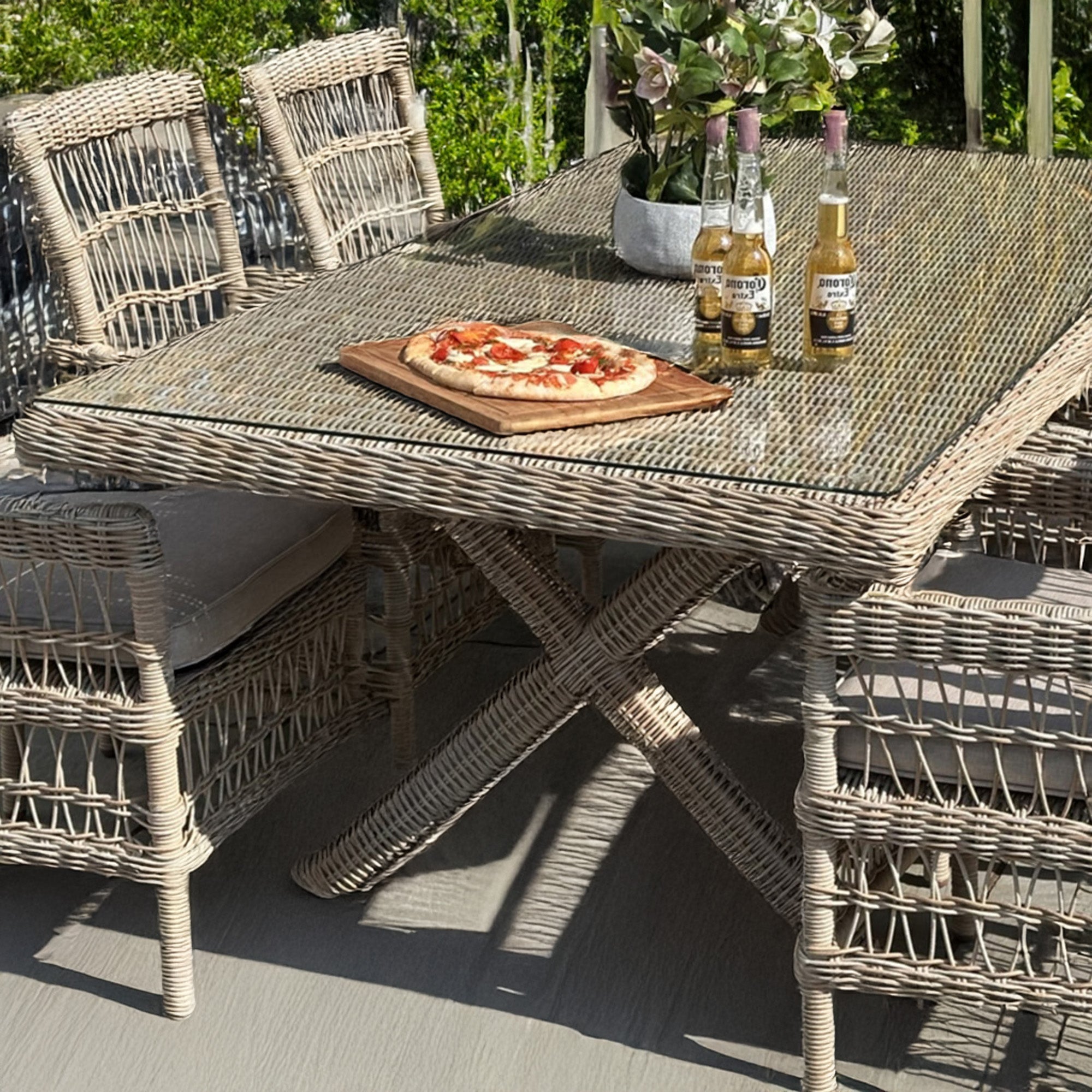 Provence Outdoor Rattan Dining Set – 6 Seater with Glass Top Table & Olefin Cushions