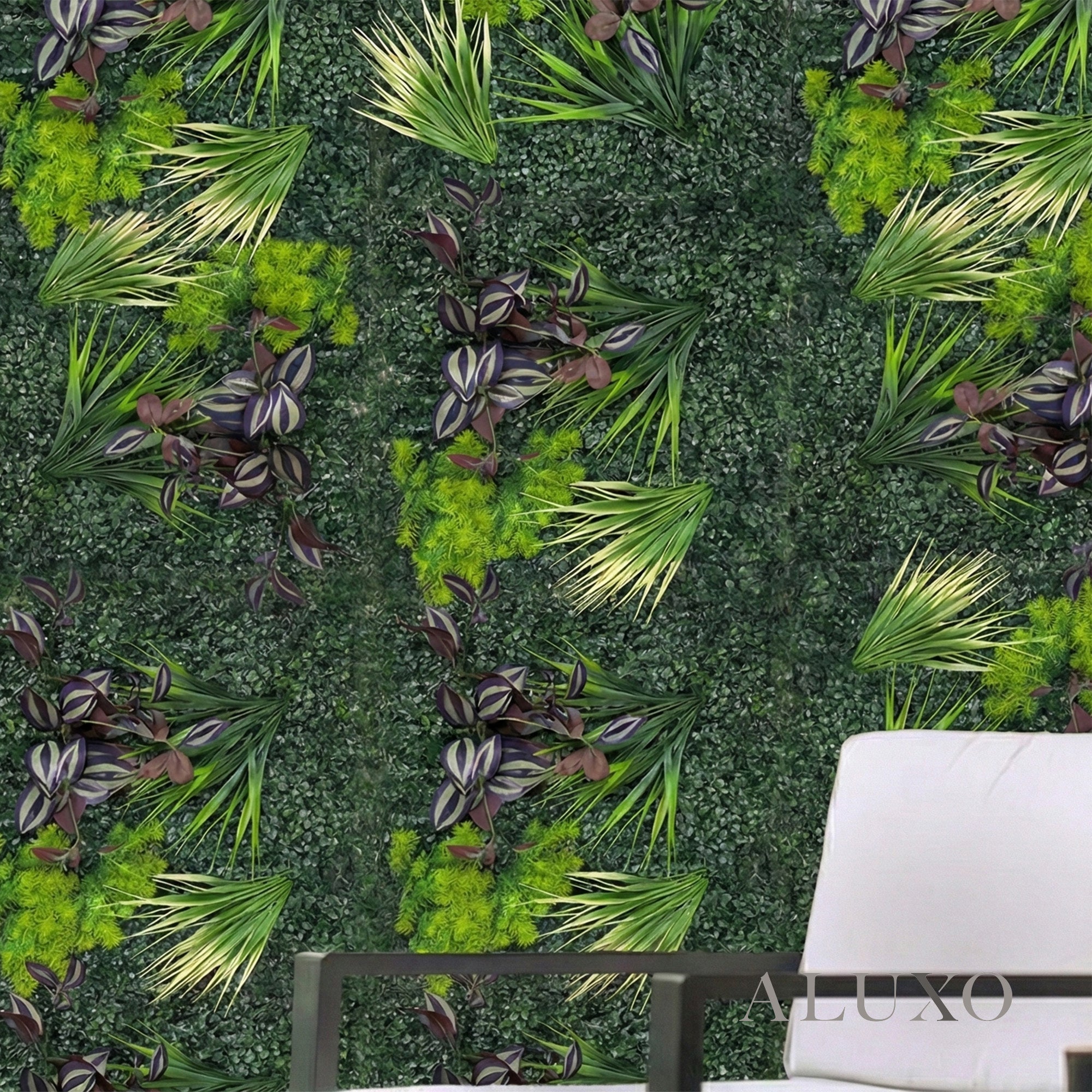 The Aluxo Riviera Wild Orchid collection captures the untamed beauty of a tropical botanical garden. Featuring a sophisticated mix of variegated foliage, architectural long-leaf accents, and warm-toned tropical plants, this panel set brings a design-led, high-performance greenery system to luxury residences and commercial interiors alike. Aluxo-Track Aluxo-TrackCopy