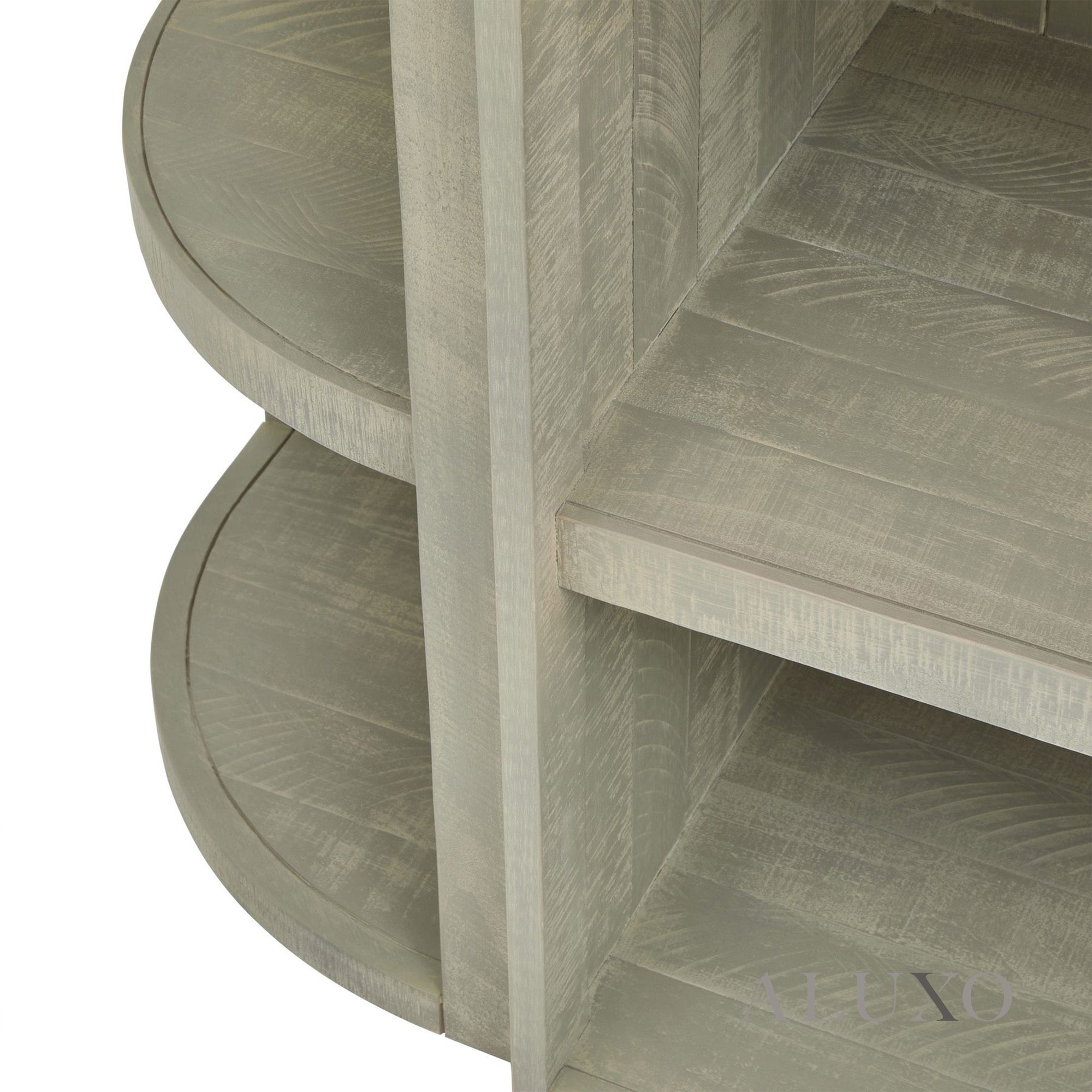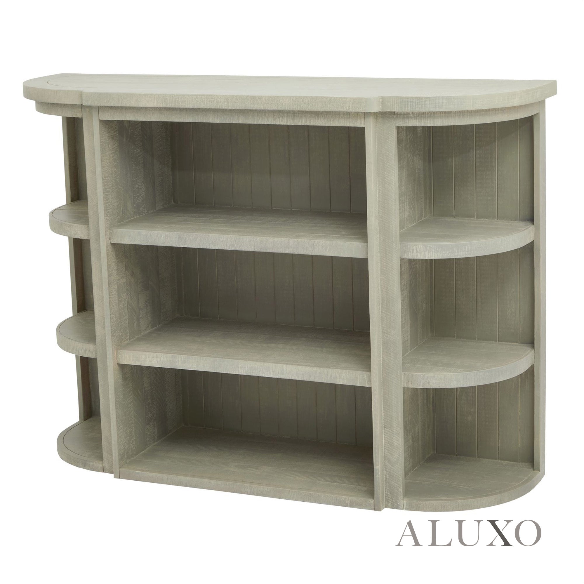 This three-shelf unit offers ample vertical display for decor, tableware or retail accessories. The grey-stained pine enhances its tactile quality while maintaining visual neutrality, allowing it to complement a wide range of furniture and accessories from the Saltaire Collection. Aluxo-Key:GRYPINE153DSPLY